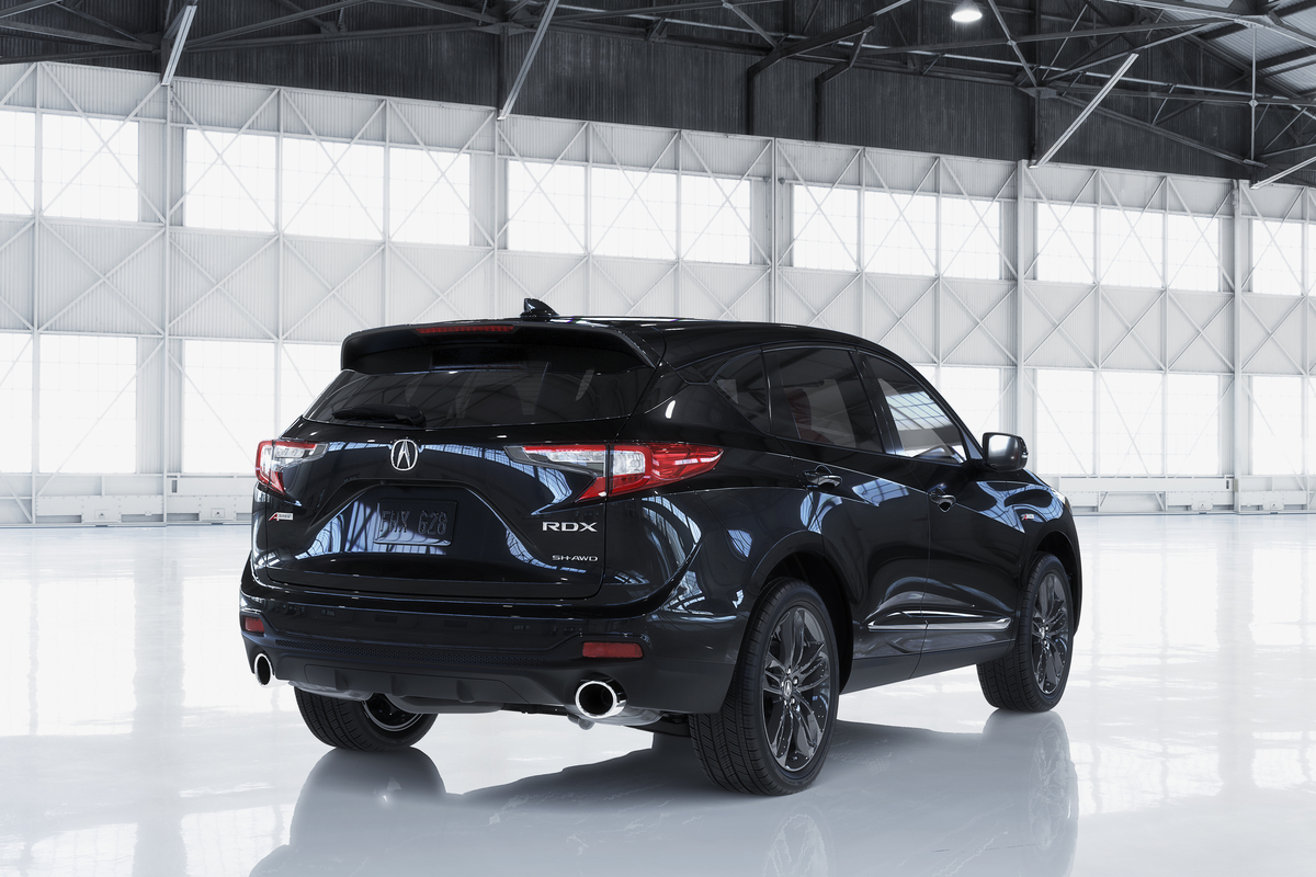 As promised, the automaker is also rolling out a dolled-up A-Spec version of the RDX. Mirroring changes in the recently revealed MDX A-Spec, the top-shelf RDX gets black exterior trim, 20-inch smoked wheels, a more aggressive chin, bigger exhaust tips, and darker headlights. On the inside, the A-Spec is fitted with sport seats with Ultrasuede and special stitching, real aluminum trim pieces, a leather-wrapped sport steering wheel, and a red-themed gauge cluster.