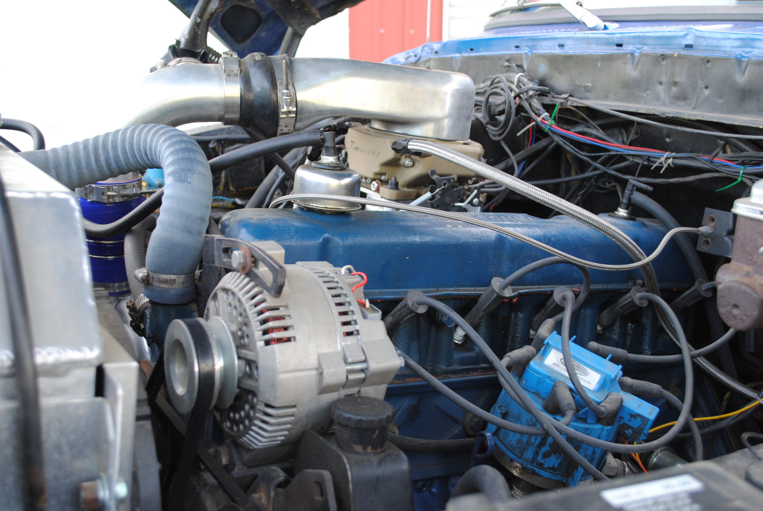 See, he’s still using this truck to tow tractors and skid steers. It’s like any old turbodiesel workhorse you love, except it runs on a different fuel and it’s been heavily modified to run the way it does. While the engine block and rotating assembly are still stock, most everything else has been upgraded. The valvetrain now consists of a Comp Cams 268 camshaft, Chevy 292 I6 rocker arms, and .060-inch valve spring shims. The intake is a Clifford four-barrel, and it utilizes Holley Sniper electronic fuel injection. It has the Chevy-style HEI distributor, along with an MSD 6AL-2 ignition module. As a 300 I6 owner, I can tell you these all make a significant difference on their own, and we haven’t even talked about the turbo yet.