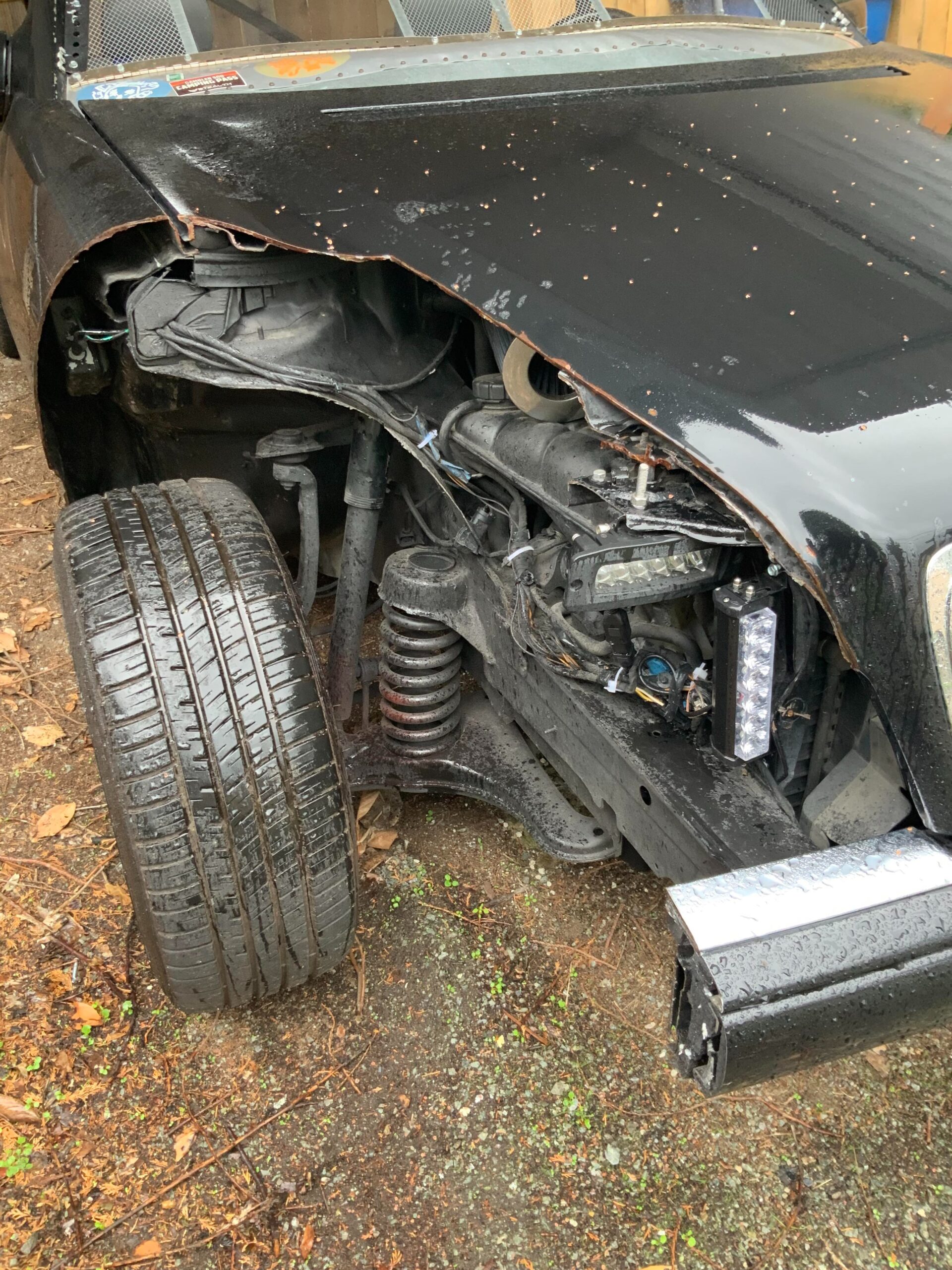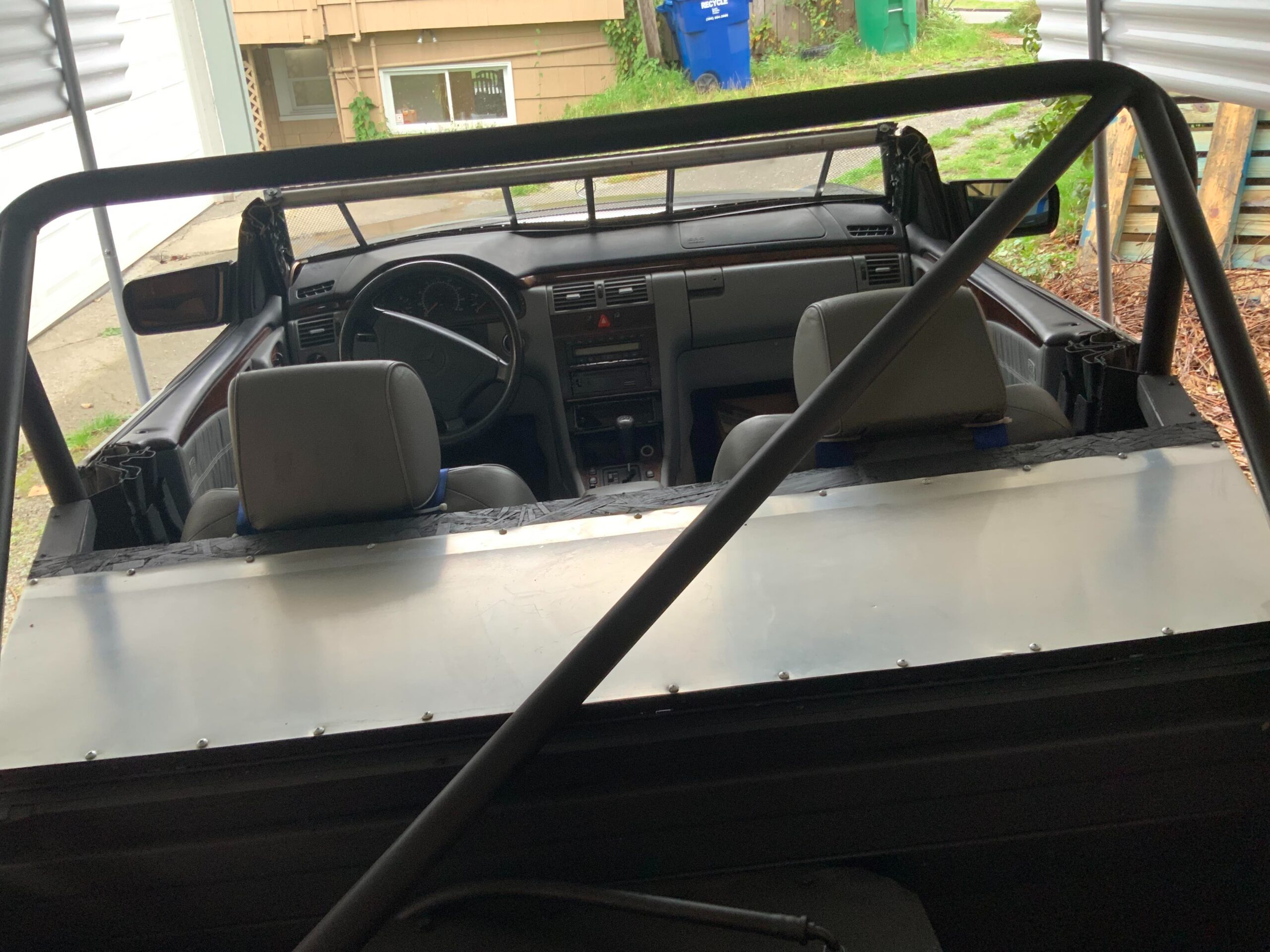 What remains is a 275-horsepower, 4.3-liter V8 running through a five-speed automatic gearbox and the forward portion of the E430’s interior that is in shockingly good shape. Walley says the car is “fast,” which feels believable considering the absurd weight savings that come from deleting most of a car. It runs and drives, but has a “slightly bent” rear axle.