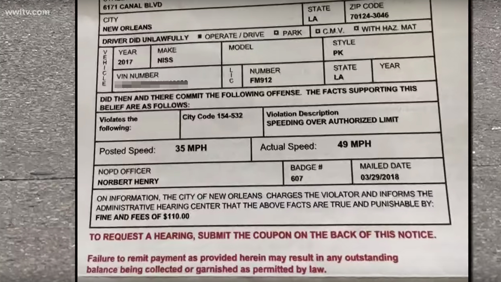 Actually, make that 11. After the first story ran last week, Schultz received another ticket on Saturday night. A security camera shows this one was actually triggered by a New Orleans Police Department vehicle speeding down the road, but as usual, Schultz was the unlucky recipient of the fine.