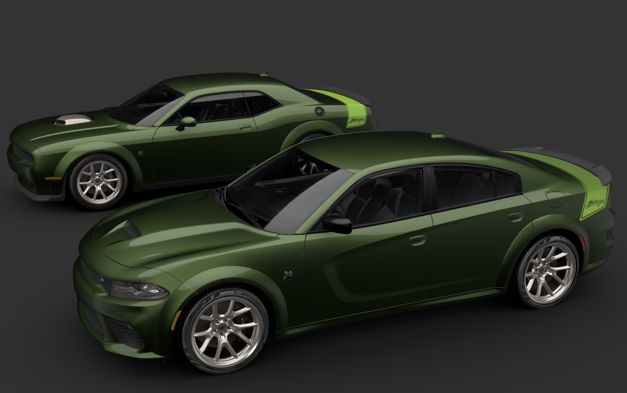 Exterior color options are limited to F8 Green, Sublime Green, and White Knuckle. The Swinger models will feature special “Gold School” badges on the fenders and grille, along with a painted shaker intake on the Challenger version. As per Mopar tradition, there’s a sticker pack too, including decals along the rear fenders and trunk lid.
