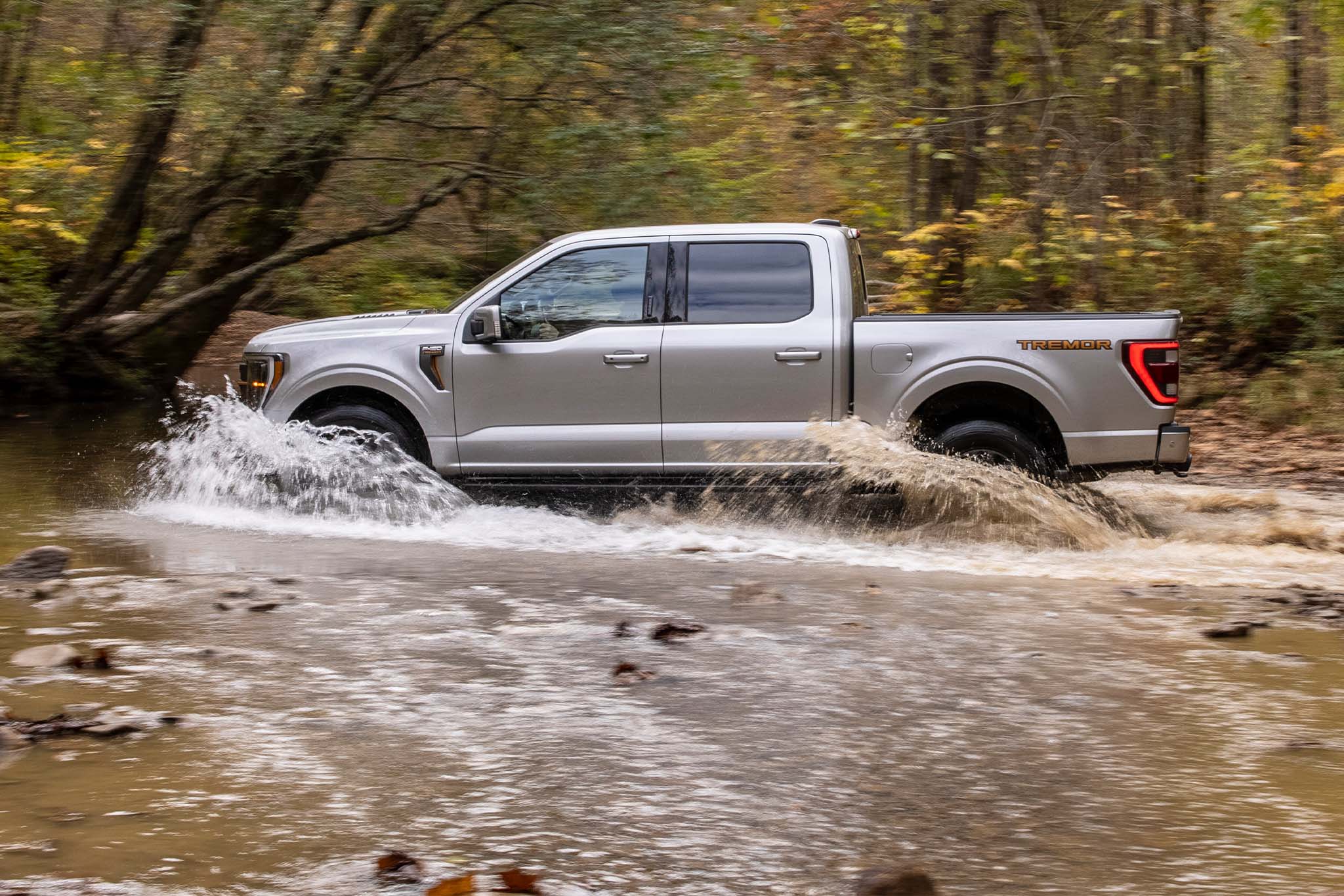 Regardless of which engine you pick, the F-150 Tremor rocks locking front and rear differentials, trim-specific shocks, and a 3.73 rear axle. The existing truck can tow 10,900 pounds with help from the EcoBoost, though it’s unclear what its listed max will be with the V8. It’s available exclusively as a crew cab, short bed with the 12-inch infotainment display, and it also sports a digital 12-inch driver information screen.