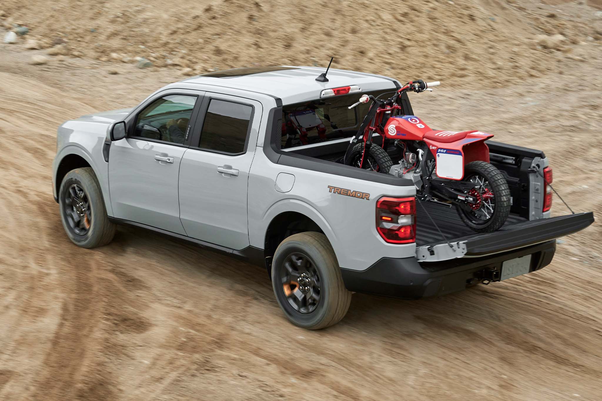 Since the Ford Maverick gets a Tremor package rather than an entire trim, it can be applied to XLT and Lariat models. It costs $2,995, and the Tremor Appearance pack adds black side graphics on the hood and lower body, plus a Carbonized Grey roof and mirror caps for $1,495. Orders will open in September with production starting this fall.