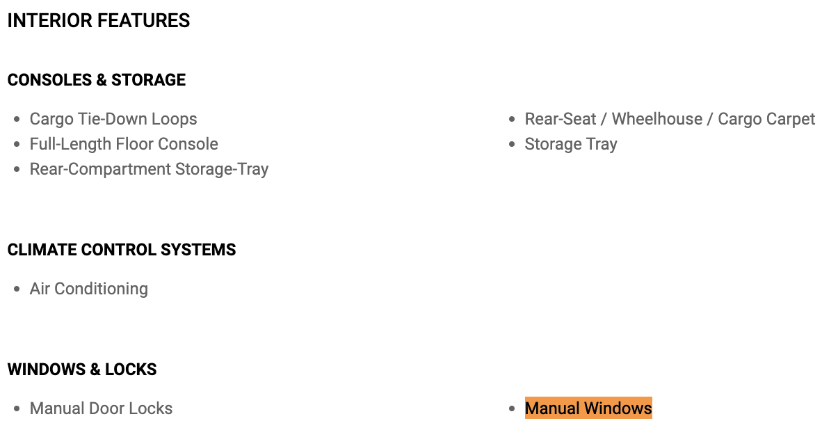And before any of you guys bring up the ancient Toyota Tacoma, it doesn’t have crank windows either. I checked!