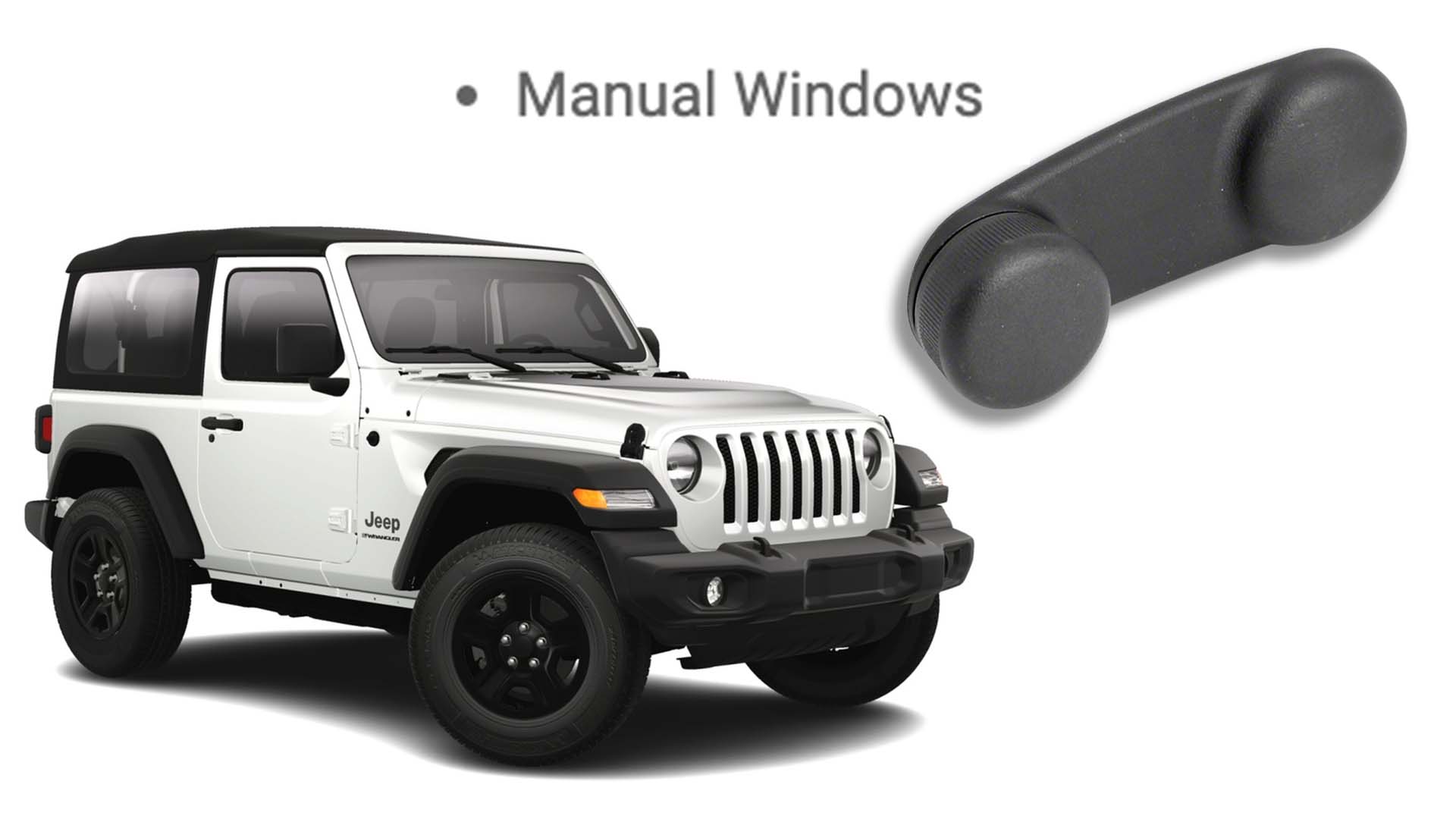 A quick trip over to Jeep’s configurator shows that Wranglers and Gladiators in the Sport and Willys Sport trims still offer manual windows as standard. That’s it, though—don’t think you’ll get the off-road goodies of a Rubicon with the simplicity of hand cranks. I doubt this is a huge concern for most folks because let’s be real: Who’s basing their purchase on this? A manual transmission, I can understand. But this? Nah.
