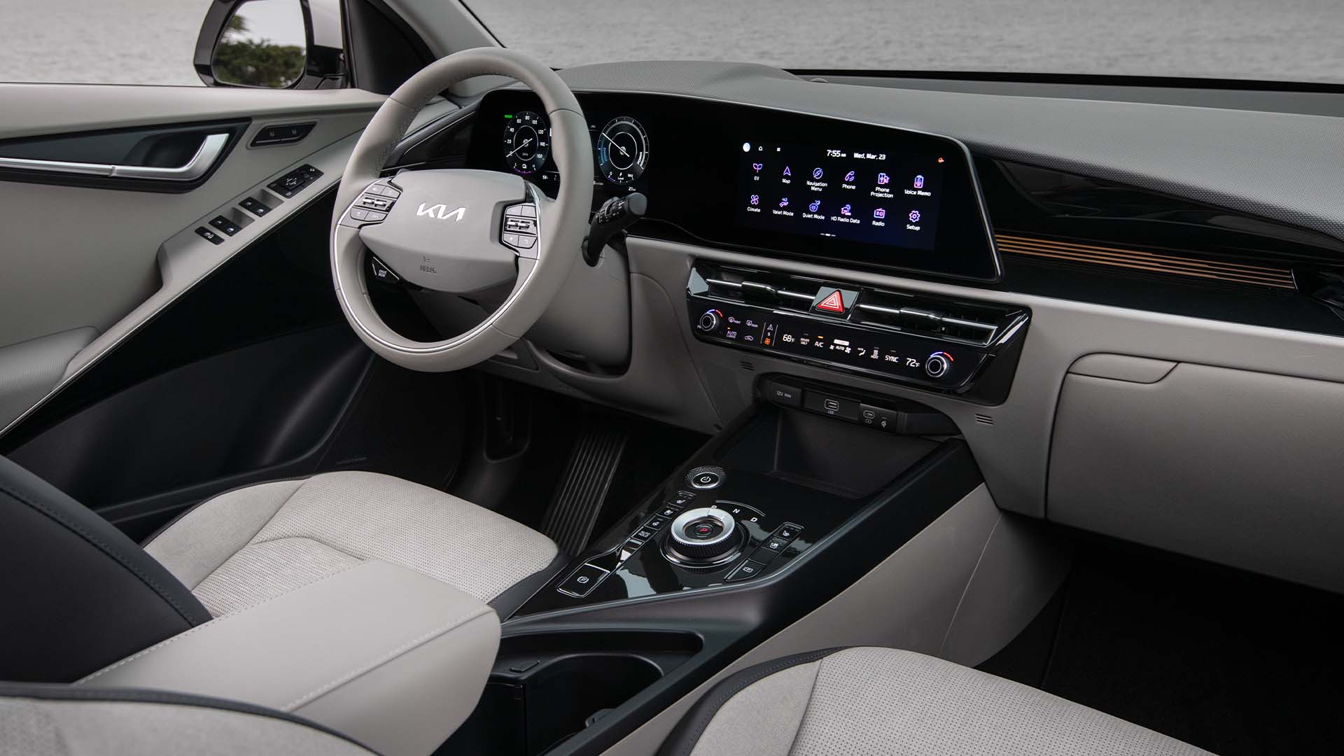The second-generation Niro, as with the first, comes in three variants: A traditional hybrid, a plug-in hybrid, and a fully electric version. The hybrid comes with the same drivetrain as the outgoing model, with an electric motor and a 1.6-liter four-cylinder engine producing a combined 139 horsepower and delivering a targeted 53 mpg, as it did in 2022.