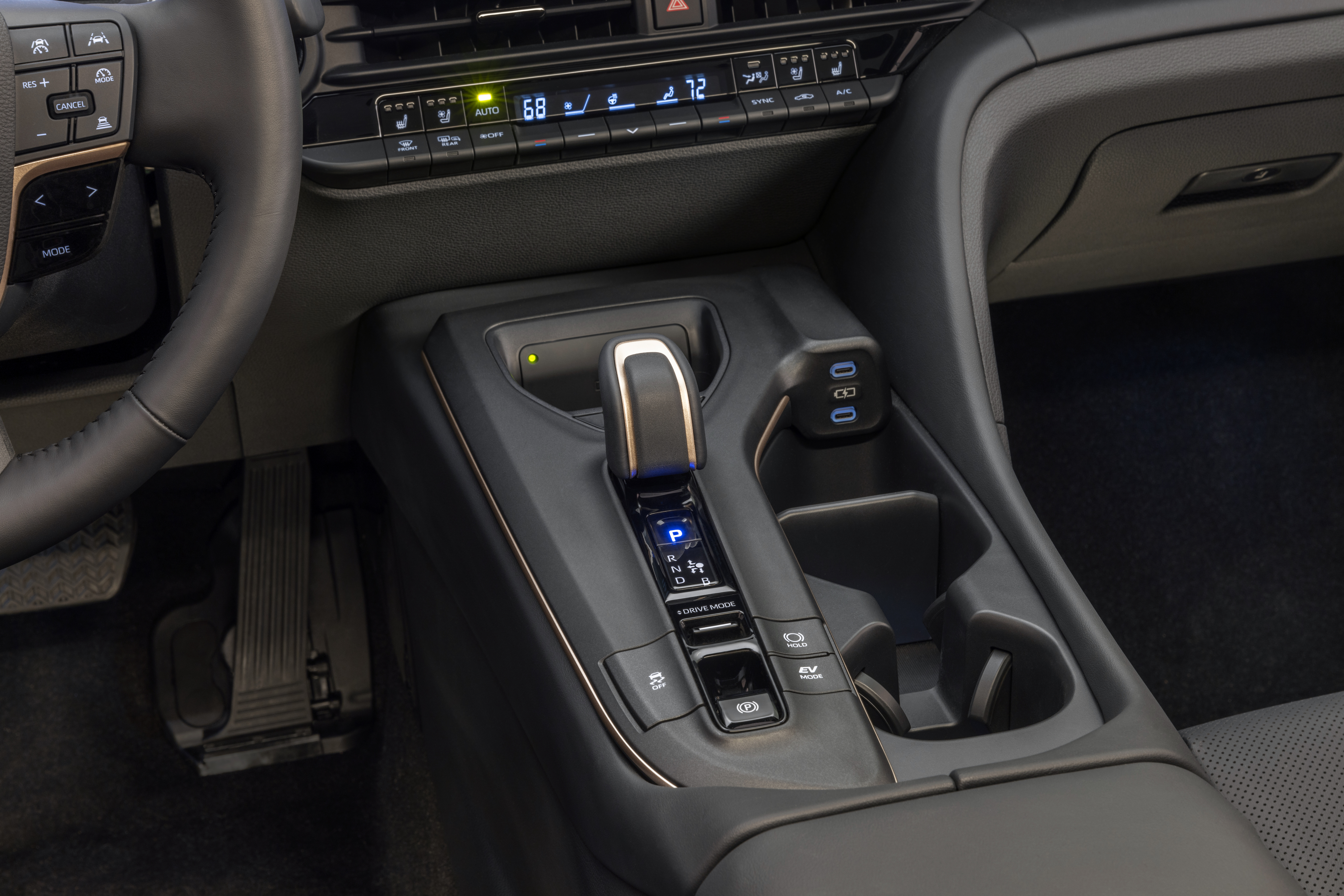The Hybrid Max System uses a six-speed direct-shift automatic transmission complete with paddle shifters. Even though Toyota says it’s tuned for performance and ample low-end torque, the company estimates it gets 28 miles per gallon in combined city and highway driving.