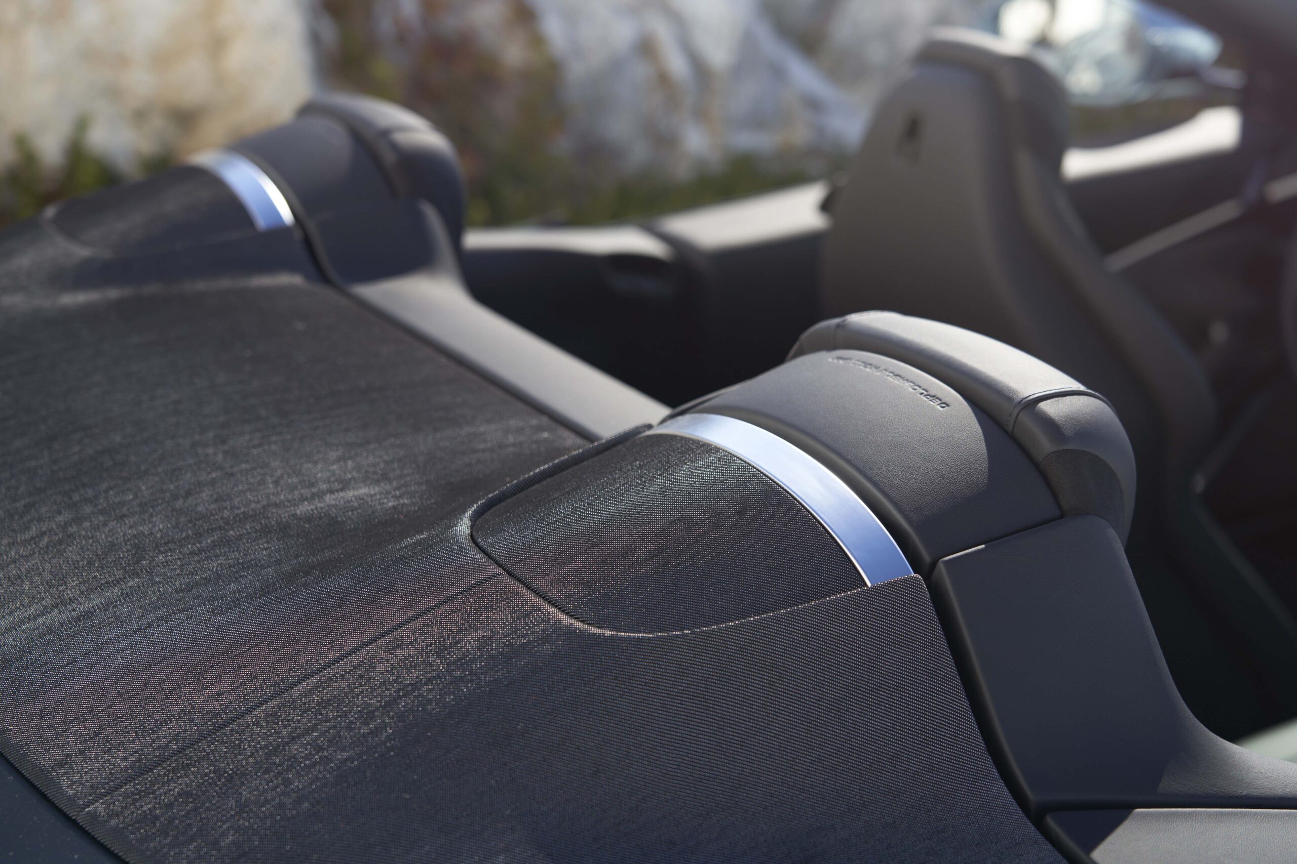The Ferrari Roma Spider is another reminder that Maranello’s heart is in two doors, even if its wallet now leans toward tall-riding four doors. Not much has changed in the Roma with the subtraction of the hard roof: it’s still powered by a 3.9-liter twin-turbo flat-plane crank V8 that spins out 612 horsepower at 7,500 rpm, still seats up to four (albeit rear passengers would be better off without legs), and is still just as decadent and gorgeous as before. The soft top, which is available in an elegant or sporty finish, operates at speeds up to about 37 mph and closes or opens in less than 15 seconds.