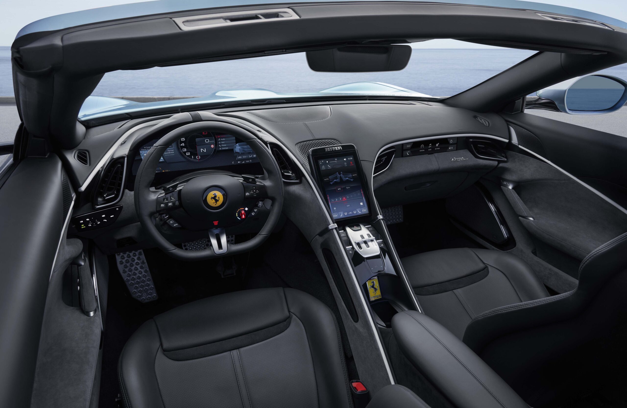 The details on the Roma Spider are equally impressive, too. Ferrari estimates the Roma will accelerate from zero to 62 miles per hour in 3.4 seconds, with a braking distance of fewer than 100 feet to bring it back to a standstill. The Roma’s eight-speed dual-clutch automatic is ported over to the Spider, and Ferrari says it’s revised the oil pump to speed up cold starts and increase flow in the medium rev range.