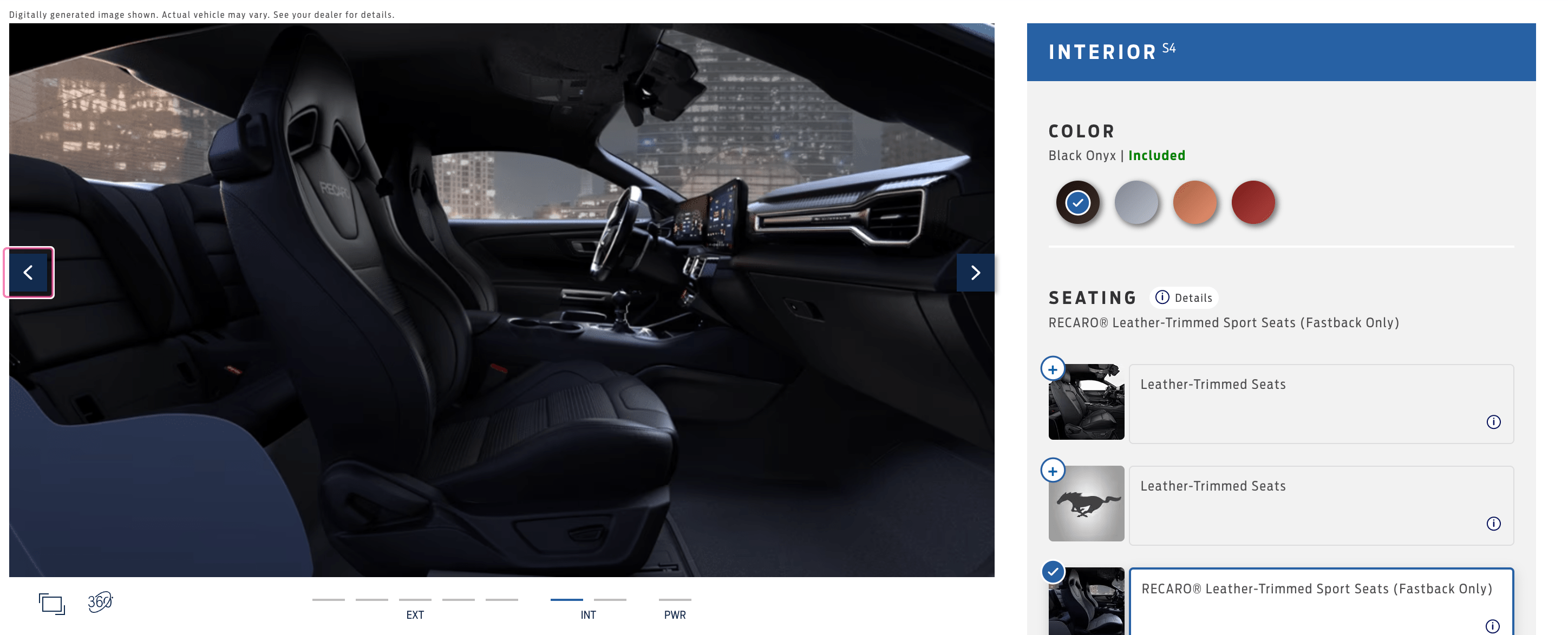 A 2024 Mustang GT Premium with Recaro seats can only have leather, while the top-spec Dark Horse can get Recaros with the microsuede. There’s a small discrepancy in that the Dark Horse uses blue leather trim with black microsuede, while the error seat in this Mustang is black. Either way, the seat that should be in this car is the leather one. Where the other seat came from is a mystery, and could even be an error seat on its own.
