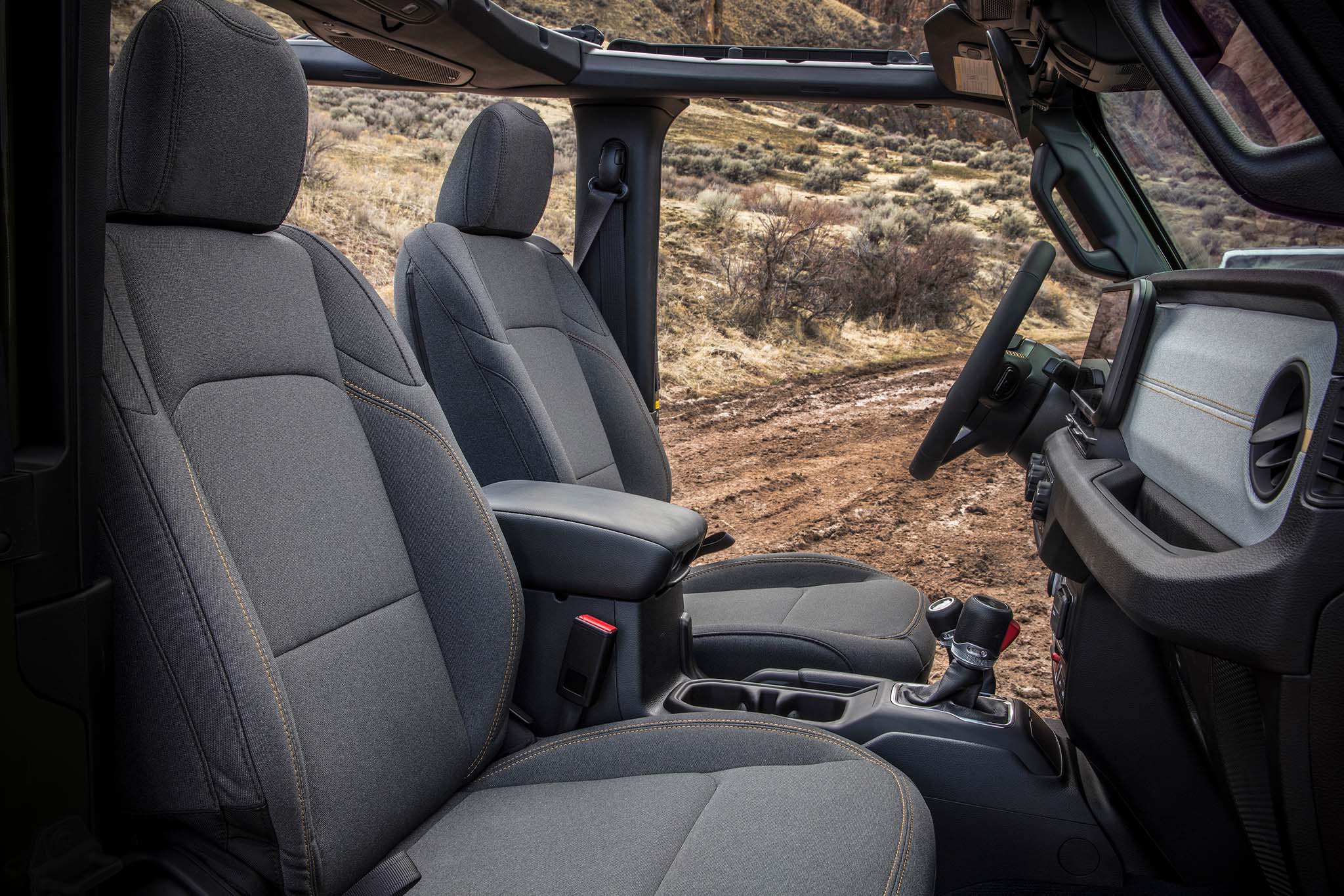 A new Wrangler Sport S 4xe model also makes its debut, making electrified performance more accessible. The interior is a little less snazzy, which isn’t a bad thing, especially if you plan on getting it dirty. Still, you get that 12.3-inch touchscreen along with power windows and locks so it’s not archaic. It also comes with the hybrid 2.0-liter turbo four, a power plant that produces 375 hp and 470 pound-feet of torque. All 4xe models also include a new Jeep 4xe Power Box that provides four 120-volt outlets with 30 amps of total output, so the battery can supply juice to personal accessories like your satellite phone or tablet.