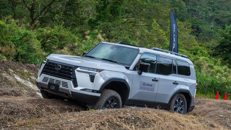 The Overtrail and Overtrail+ are the 2024 Lexus GX’s cool trim levels, adding some off-roady visual elements (fender flares, running boards, smaller wheels with bigger tires), a locking differential for very slippery conditions, and special traction control modes for different types of terrain. Those are going to tweak throttle and steering response too, to theoretically make your life easier when traction is bad.