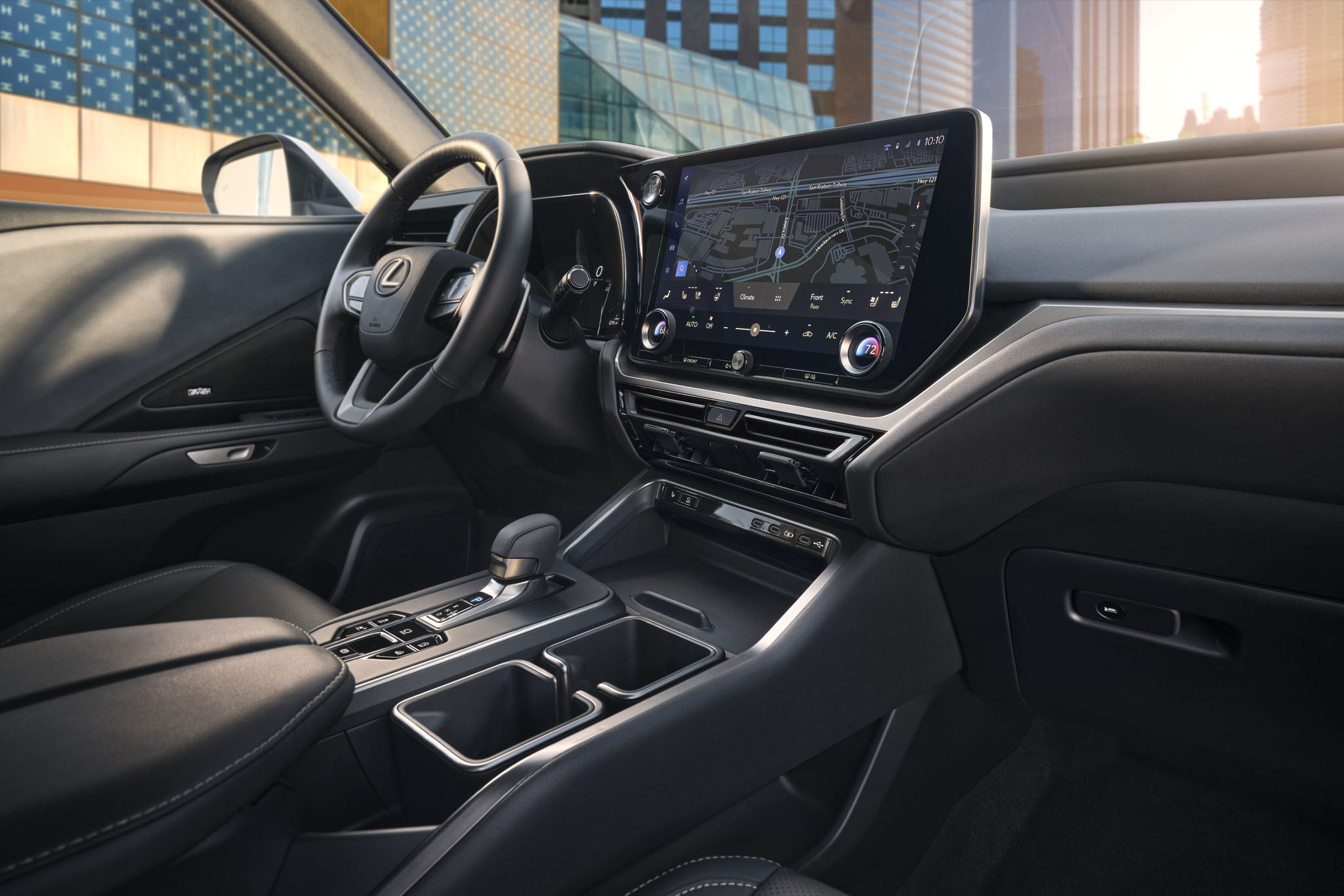 The top trim TX550h+ is really the one you want, although it won’t be available at launch. Its potent combination of a 3.5-liter V6 and a powerful hybrid system means 30 MPG, AWD, and 406 hp. Lexus says that because this electric torque is sent to all four wheels, the TX550h is extremely responsive to throttle inputs. The large battery allows for 33 miles of all-electric cruising as well, although the automaker has yet to release charge speeds and other battery information.