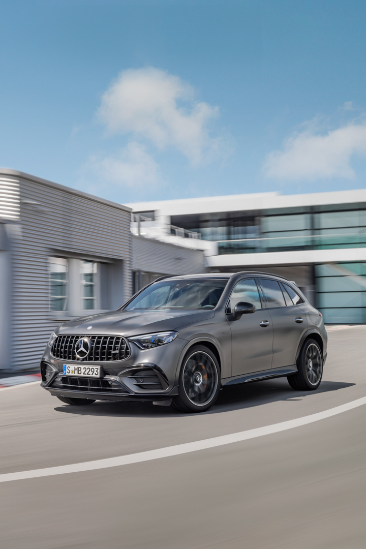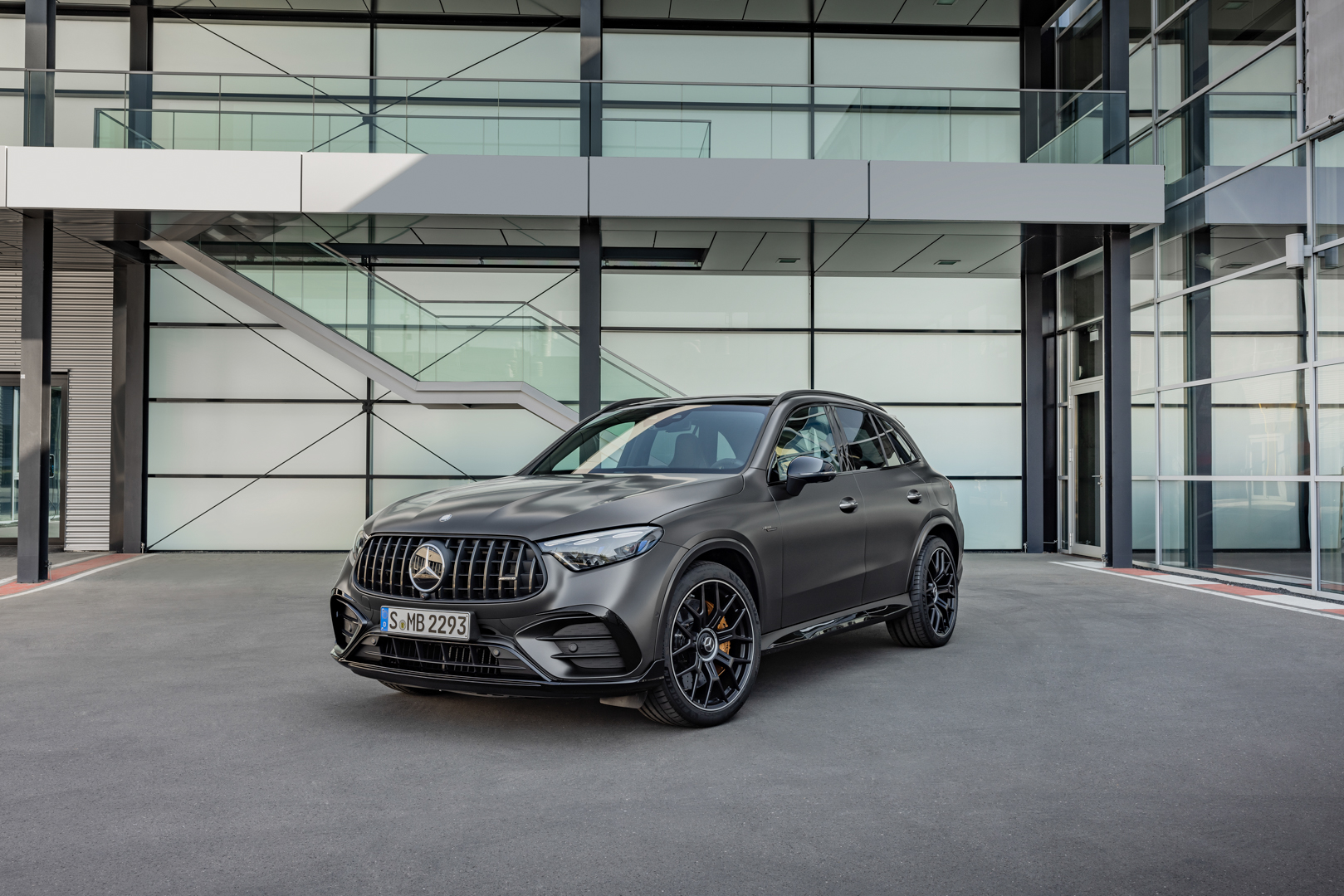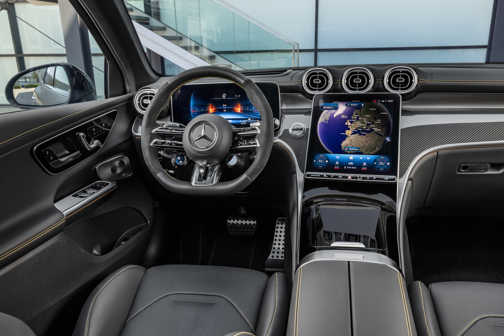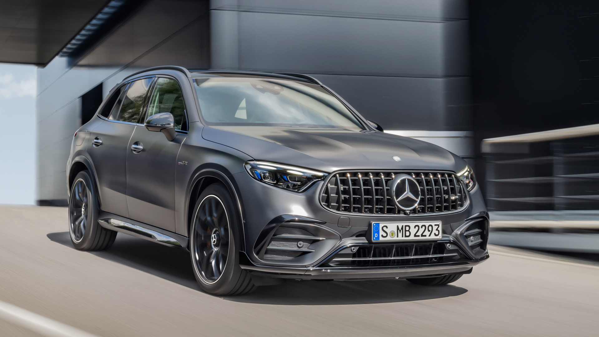 There’s a lesser AMG model, too: The 2024 Mercedes-AMG GLC43, which also comes with a 2.0-liter turbo-four. However, the baby AMG doesn’t have the GLC63’s electric motor at the back axle but instead only gets a 48-volt mild-hybrid setup with a belt-driven starter generator adding 13 extra ponies. Total power output is 416 horsepower and 369 pound-feet, which is 31 horsepower more than the old V6 model.