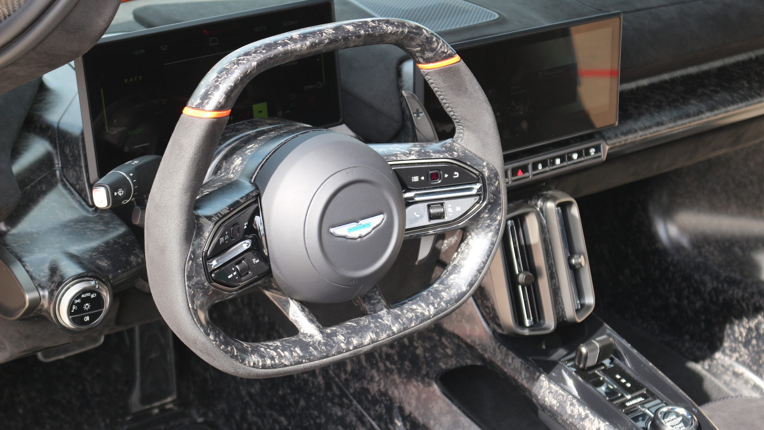 Aston doesn’t allow its drivers to manually deploy the rear wing just for low-speed peacocking, but there’s nothing stopping you from using Race mode on the street. You’ll simply need to be driving fast enough for the wing to deploy. How fast? Hmm. On second thought, perhaps I’ve said too much already. Wouldn’t want to give the Cars and Coffee crowd any ideas—not that you’re likely to see many of these around the way. Aston’s only building 999 of them. I feel compelled to point out that dialing 999 is the UK equivalent of dialing 911 in the States. Take from that what you will.