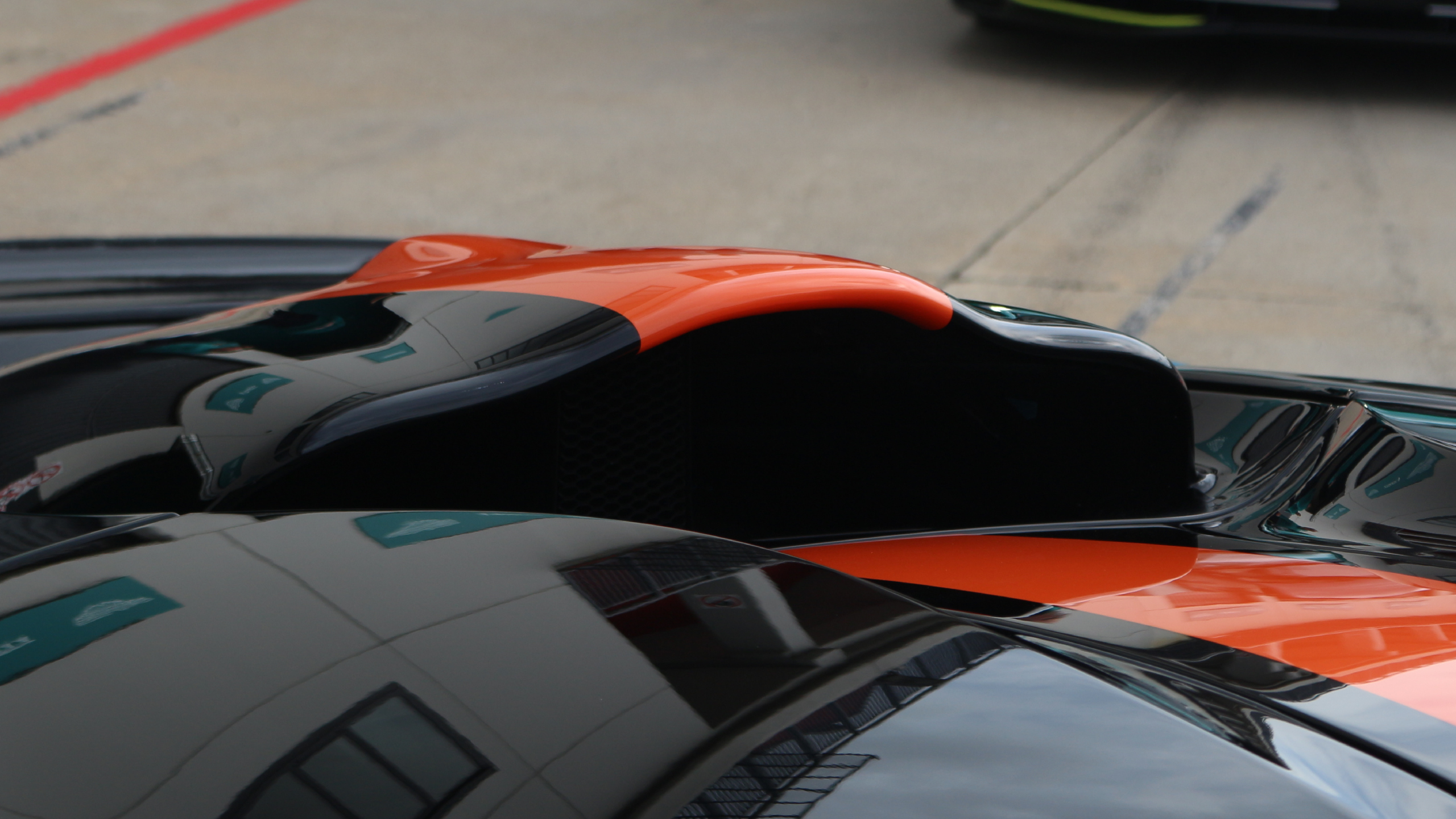 OK, time’s up; less break, more braking. Turn 9 has a lot of tire marks that vanish into the gravel. It’s an easy braking zone to overshoot if you get lost in the Valhalla’s intoxicating acceleration. I’ll do so once or twice myself before the day is out—though not by anything approaching the pucker-inducing standards of the folks who left rubber telltales behind. This is a corner where inches will cost you. You want to nail the exit through the sweeping turn 10 to grab every ounce of speed you can before the double-90-degree turn 11 complex. Unwind patiently. Trust that wing and keep it flat as you tuck in to the right.