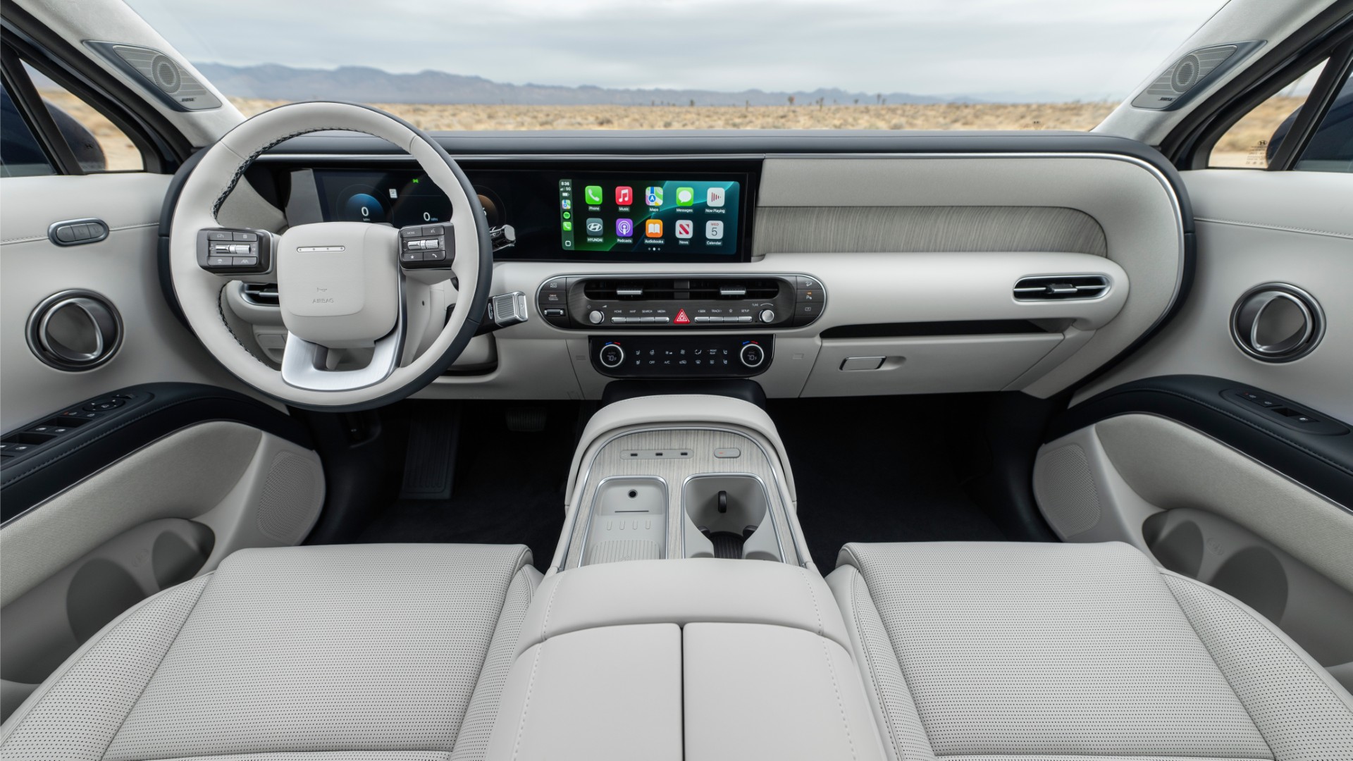 Speaking of inside, there’s plenty to see here too. We get Hyundai’s latest infotainment, which comprises dual 12.3-inch screens—one for the cluster, the other front and center—and critically, it has buttons. While some of the HVAC controls are haptic buttons located beneath the audio interface, both driver and passenger get their own knobs for temperature control (joining the two above for volume and radio tuning). The futuristic but concerningly Tesla-like screen setup Hyundai has slated for its future projects is still a ways off. In the meantime (and perhaps the long run too), we benefit.