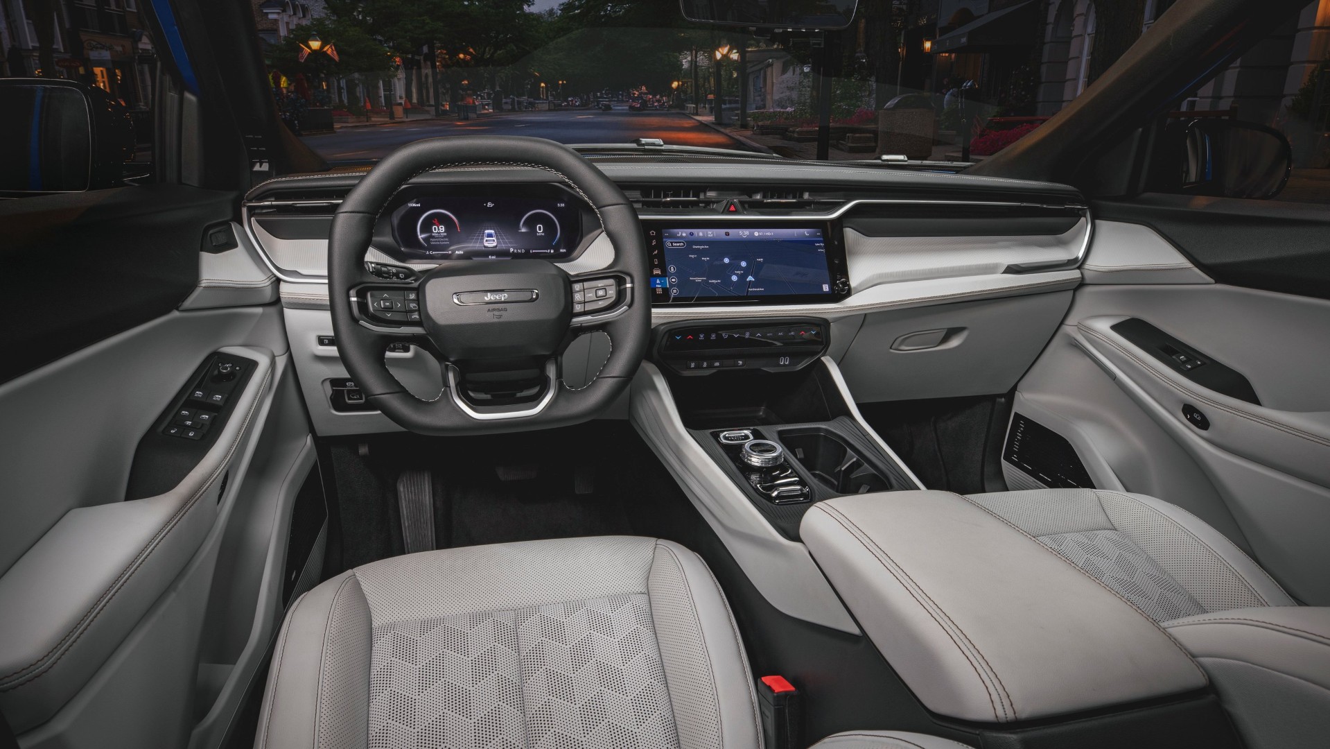At launch, the Cherokee will ship in just one configuration: an all-wheel-drive hybrid. The 1.6-liter turbocharged engine is paired with an electric motor and a 1.08-kWh NCM-Graphite battery. Nope, no plug. Total power output is rated at 210 horses and 230 lb-ft of torque. Power gets to all four wheels via a CVT and Jeep’s “Active Drive I” 4×4 system, which includes a simple single-speed transfer case and automatic torque apportionment. We’re told it’ll return a very un-Jeep-like 37 mpg combined.