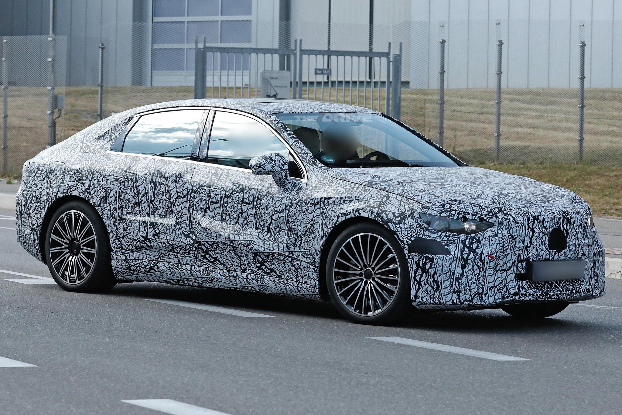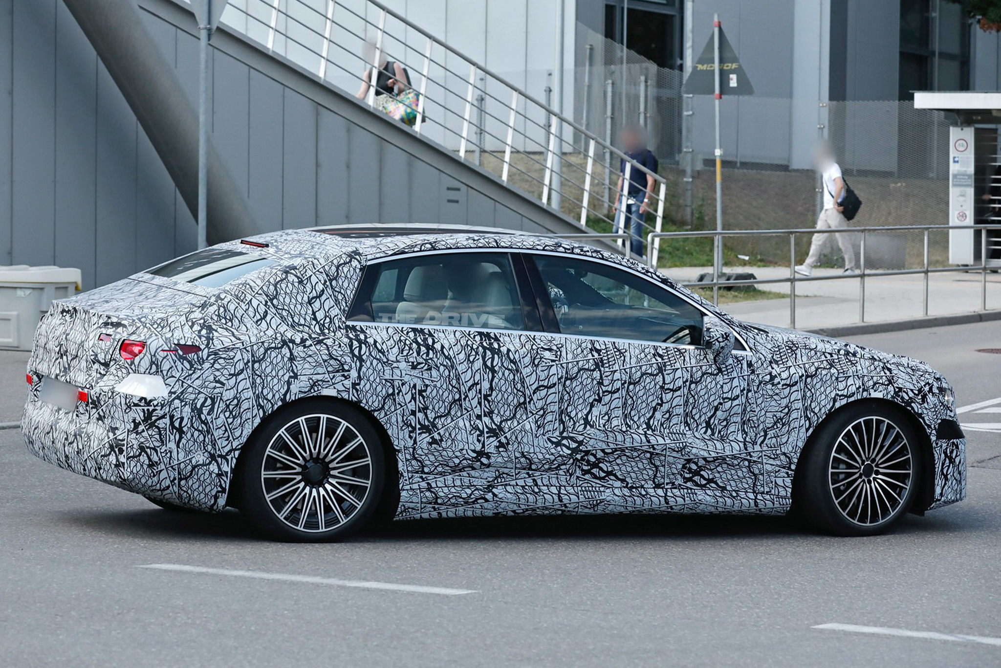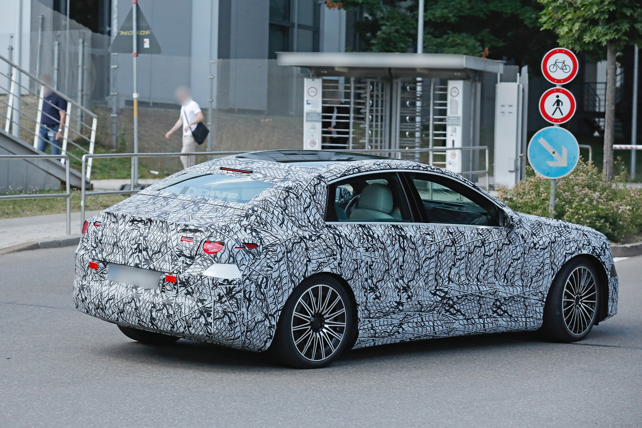 The prototype photographed here still bears the unmistakable silhouette of a drag-optimized electric sedan, but even with the camouflage, we can see that the company’s designers have managed to chisel away at some of the Dustbuster-esque elements that characterized its current crop of four-door electric cars. Instead, what we see here carries many of the same cues found on the new Mercedes-Benz CLA, which is also hitting the market in both ICE and battery-powered variants.