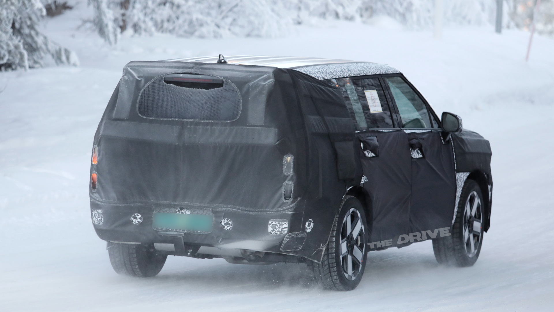 In the rear, we’re seeing a similar shift toward an upright/vertical theme. The rear lights appear to have moved from the bumper to outboard of the tailgate, which makes the prototype look more truck-like, but a lot of that is down to the disguise itself.