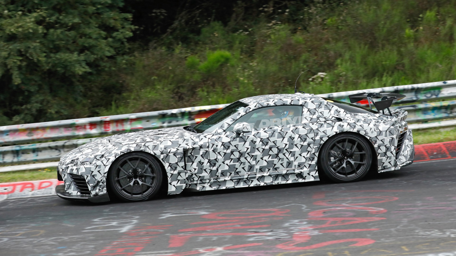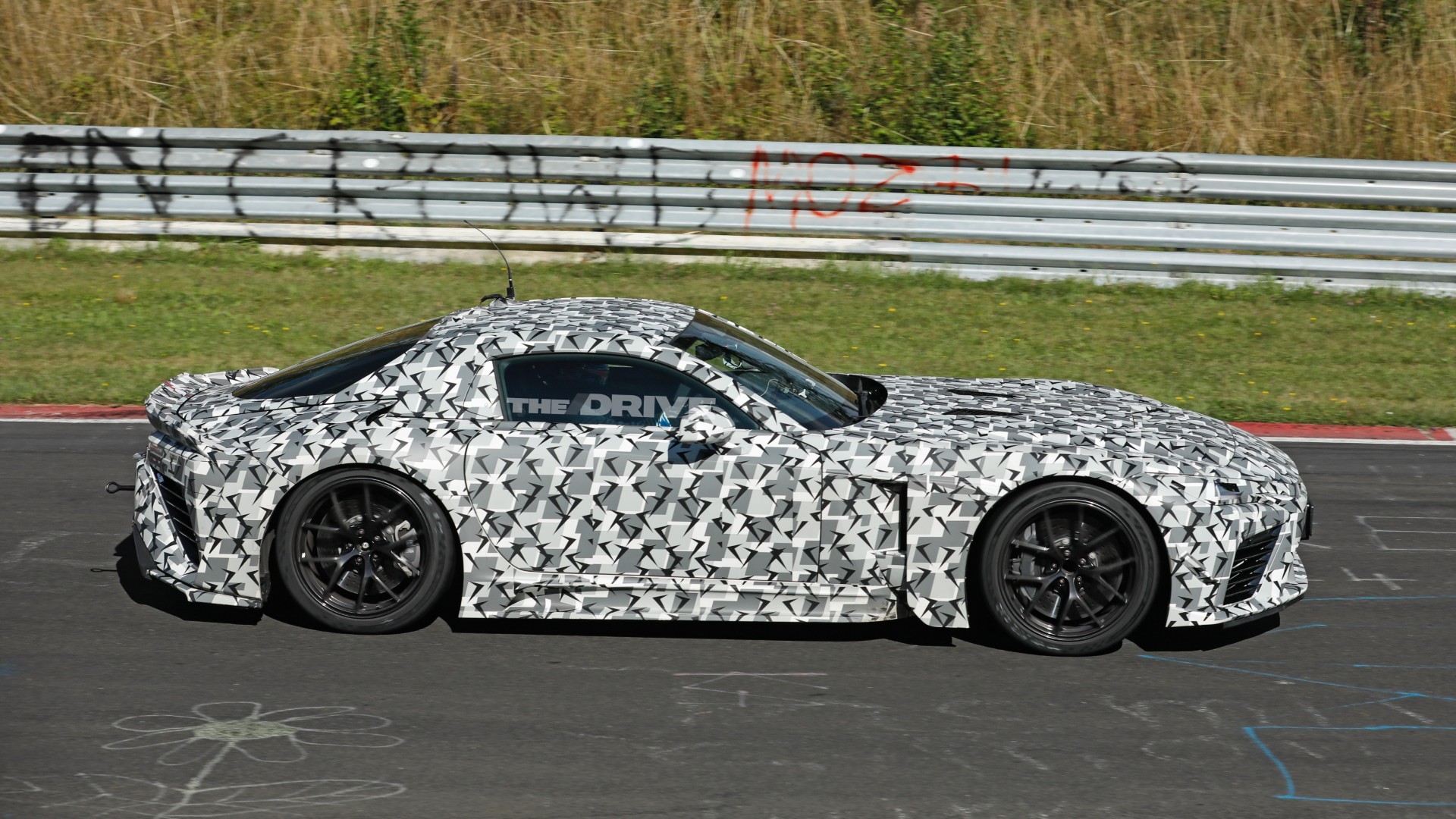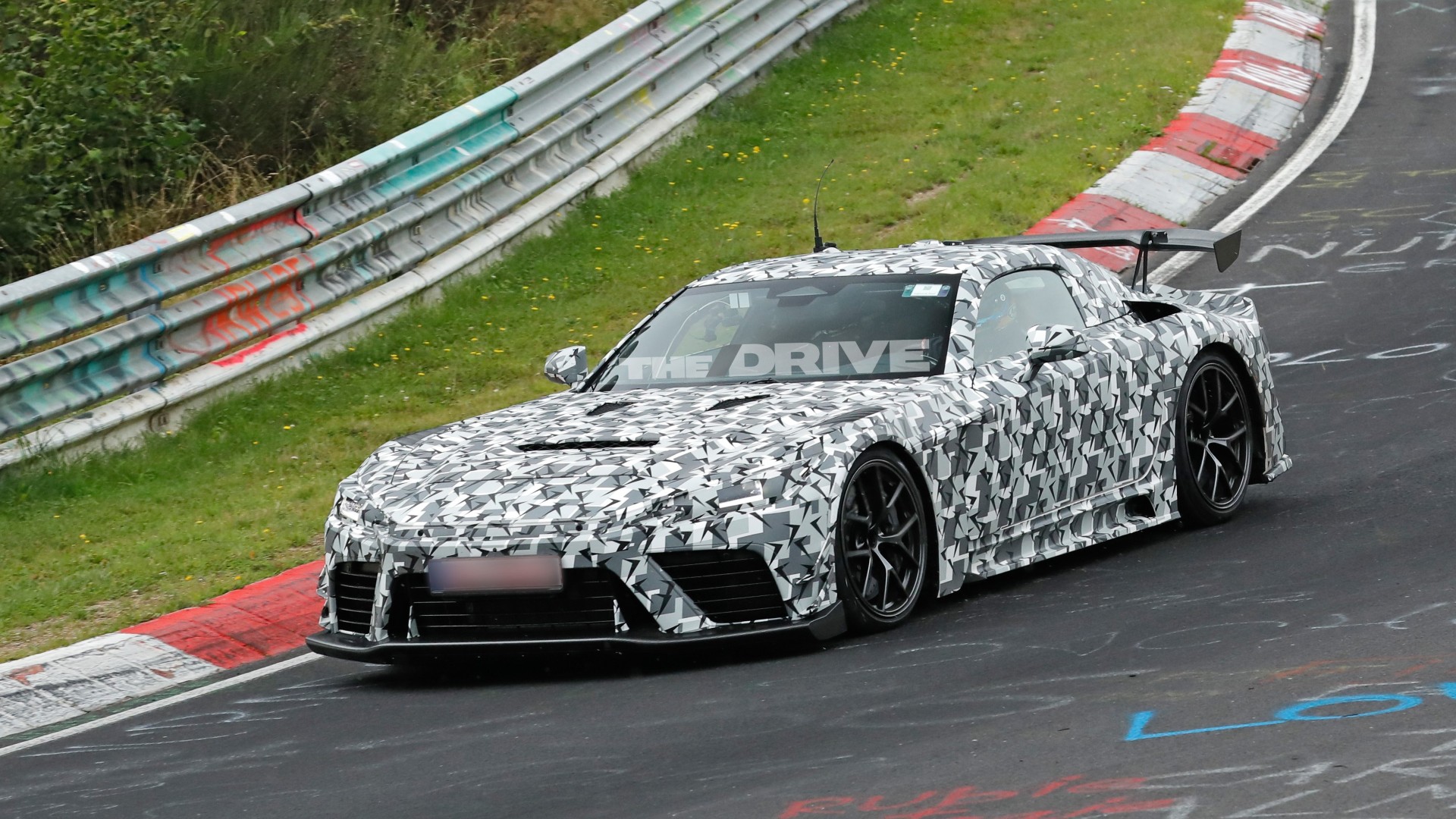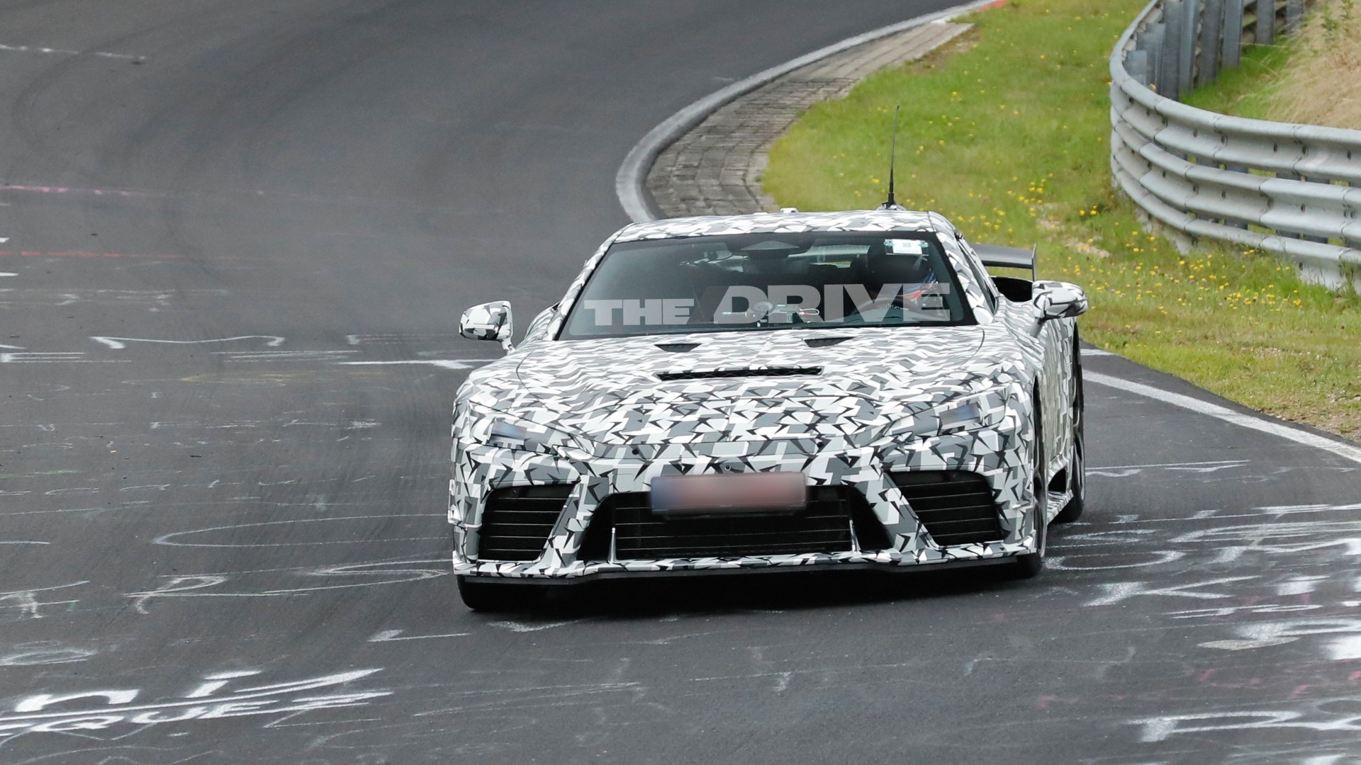 And man, just look at this thing. It’s wide, it’s low and it’s rocking some serious aero. Lexus was testing it against both a Mercedes-AMG GT R and a GT Black Series—some serious bogeys when it comes to keeping pace at the Nürburgring. Now that we’ve seen the Sport Concept, Lexus has less to hide, but the camo on these prototypes remains fairly comprehensive. One component of that disguise gave Lexus some grief, and helped me solve my lingering puzzle.