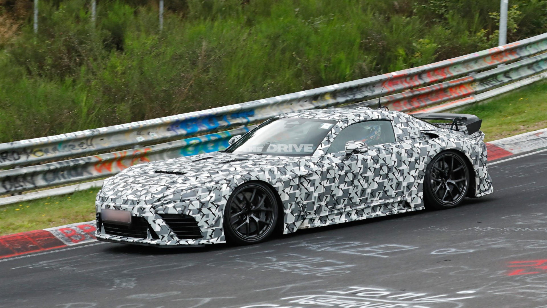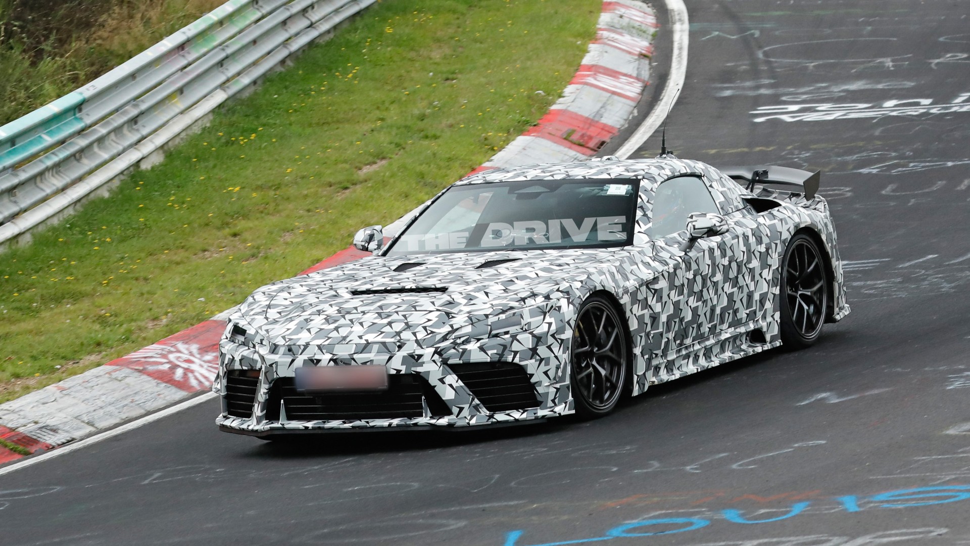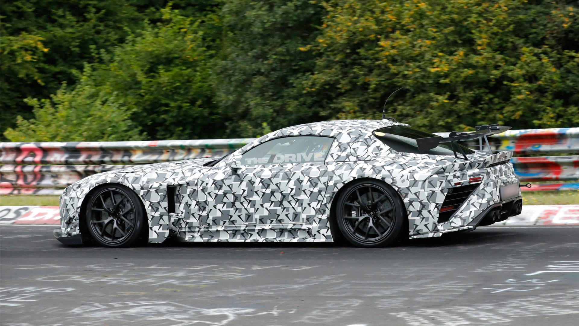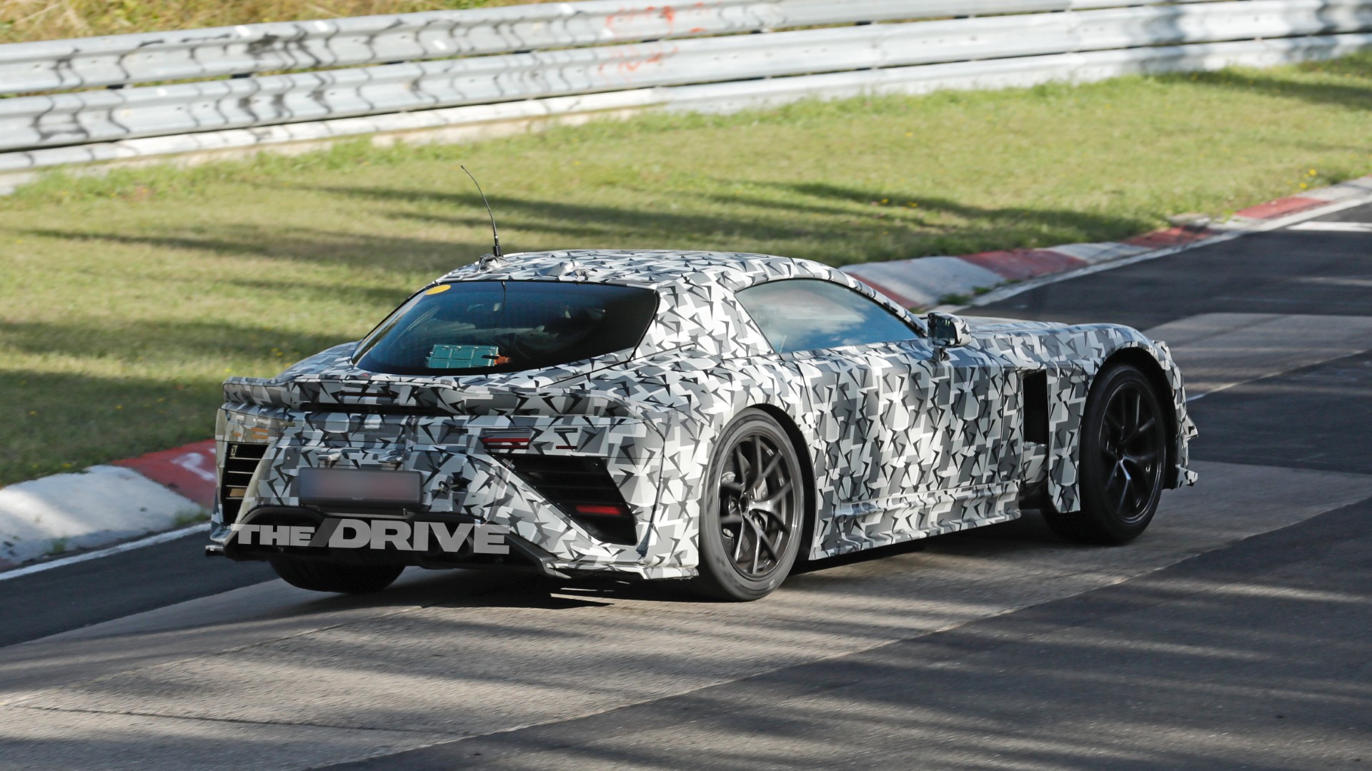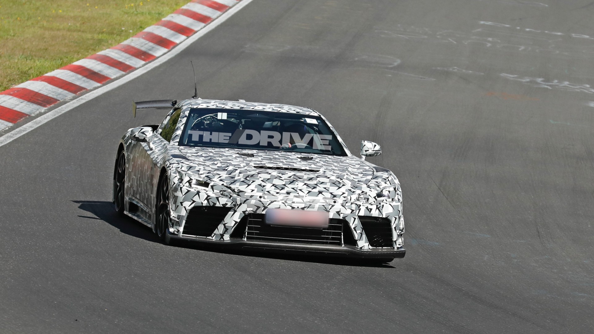 And man, just look at this thing. It’s wide, it’s low and it’s rocking some serious aero. Lexus was testing it against both a Mercedes-AMG GT R and a GT Black Series—some serious bogeys when it comes to keeping pace at the Nürburgring. Now that we’ve seen the Sport Concept, Lexus has less to hide, but the camo on these prototypes remains fairly comprehensive. One component of that disguise gave Lexus some grief, and helped me solve my lingering puzzle.