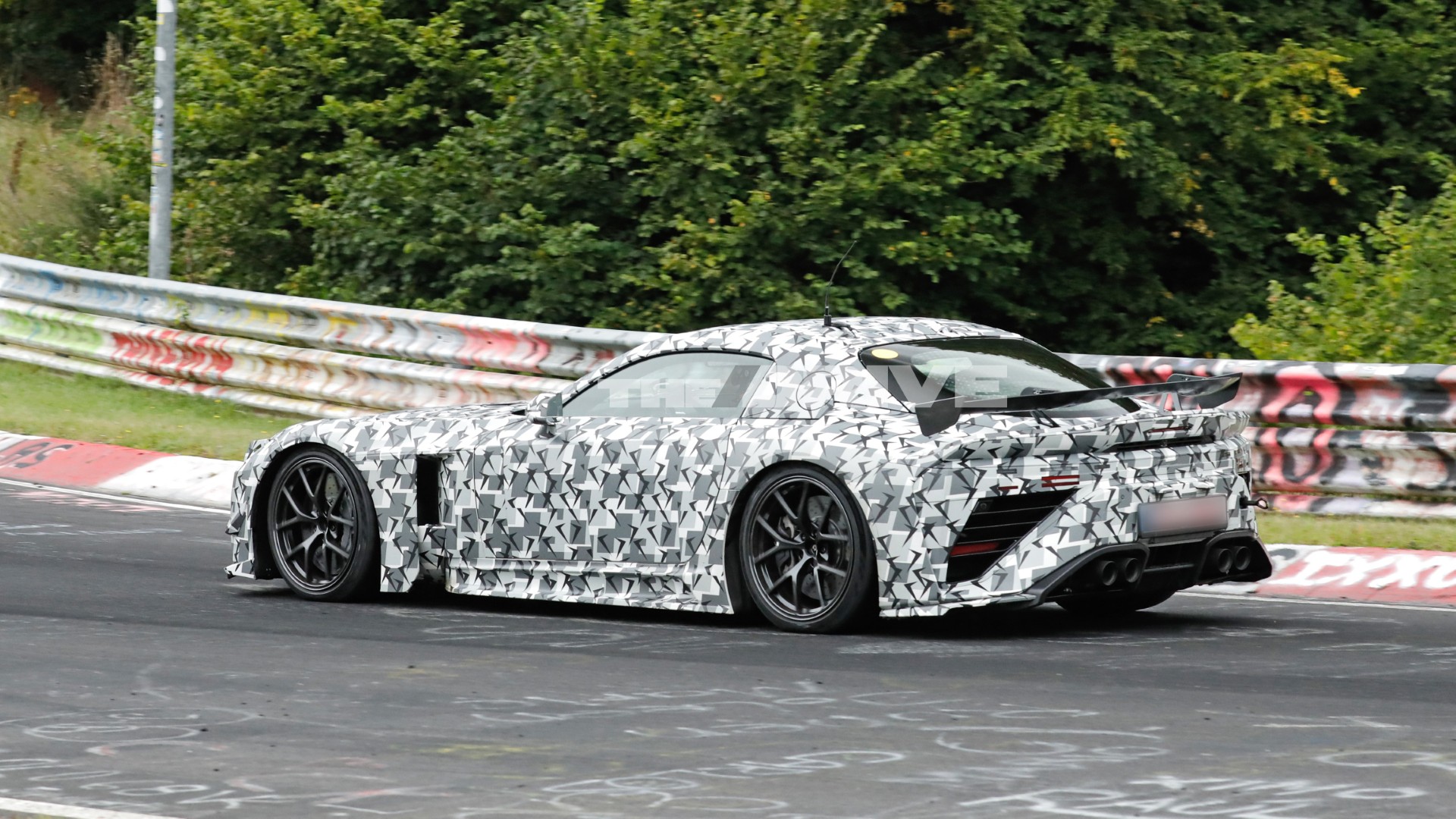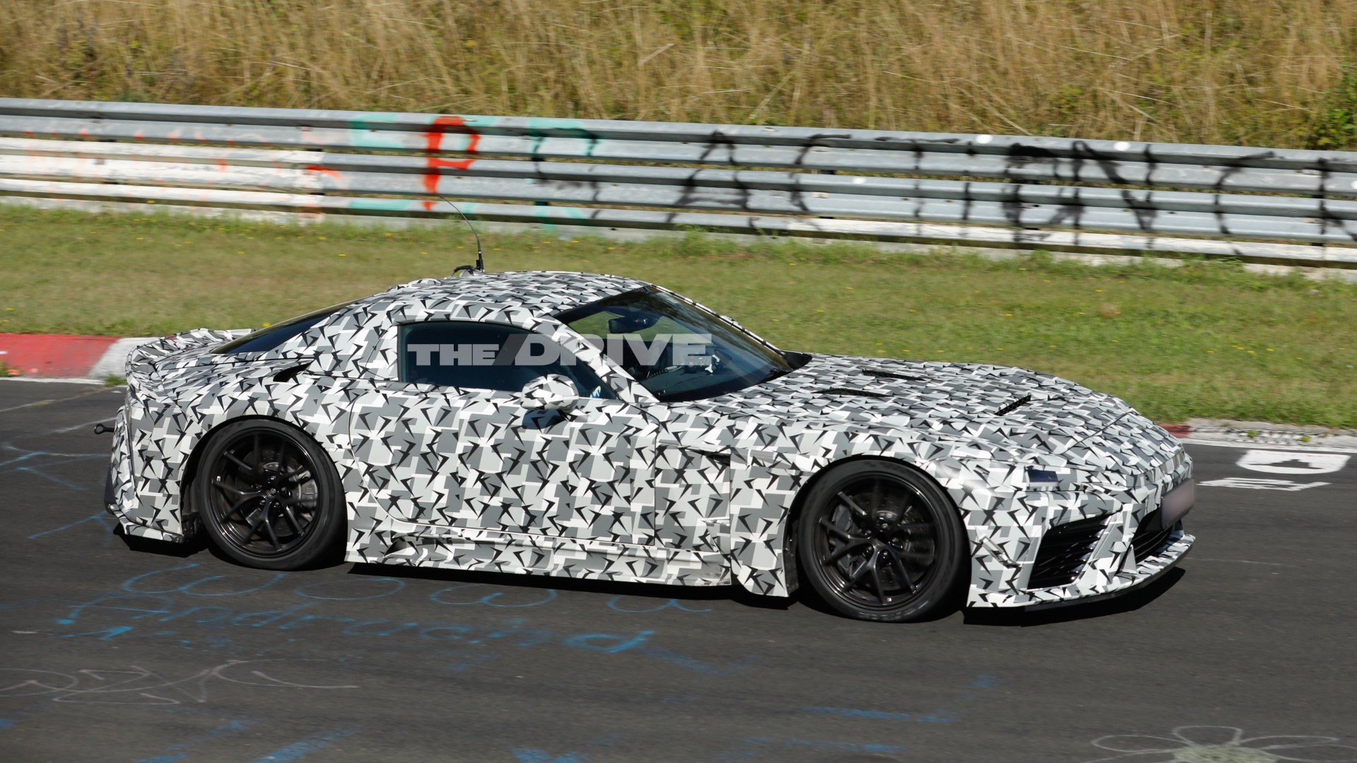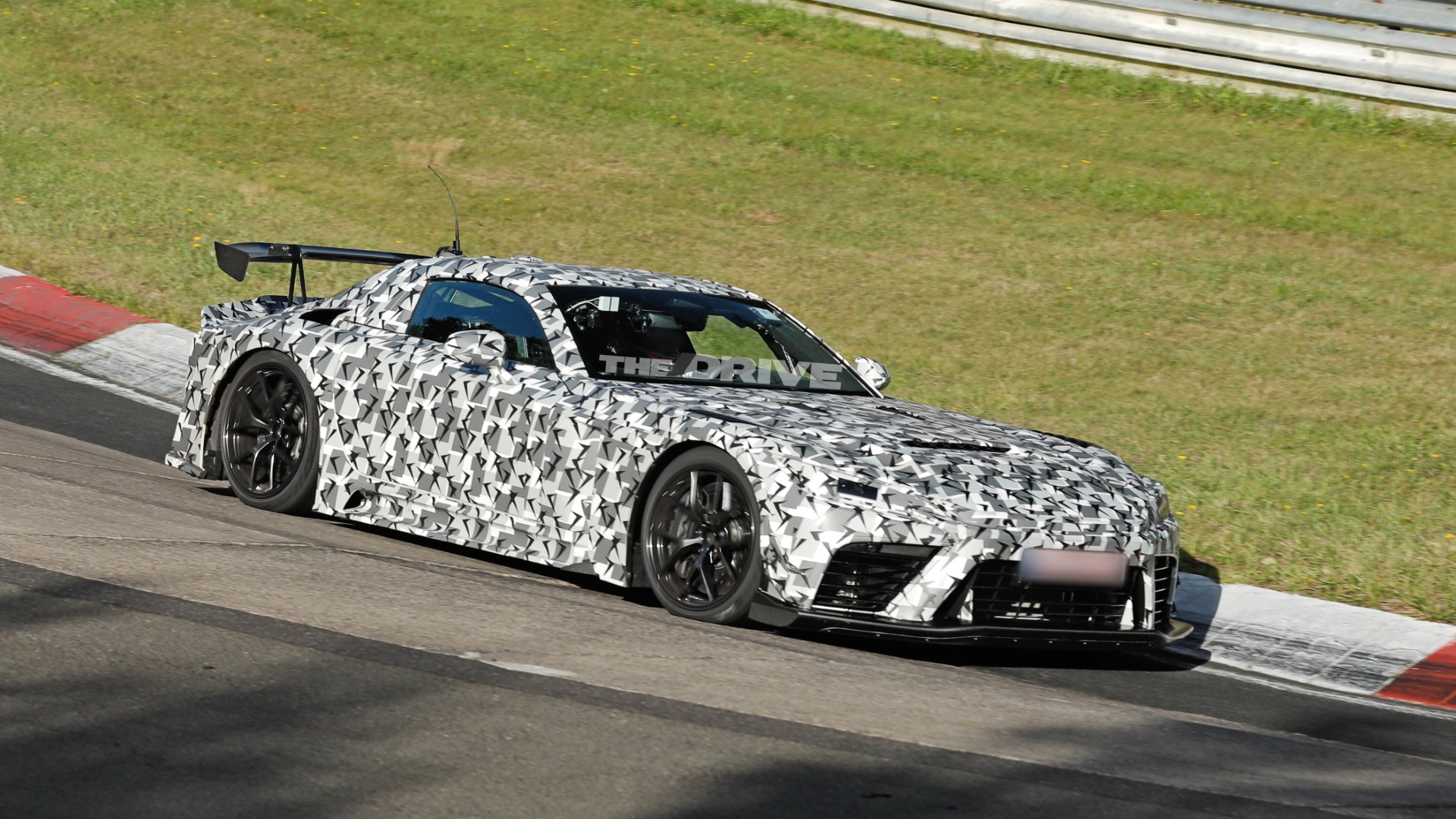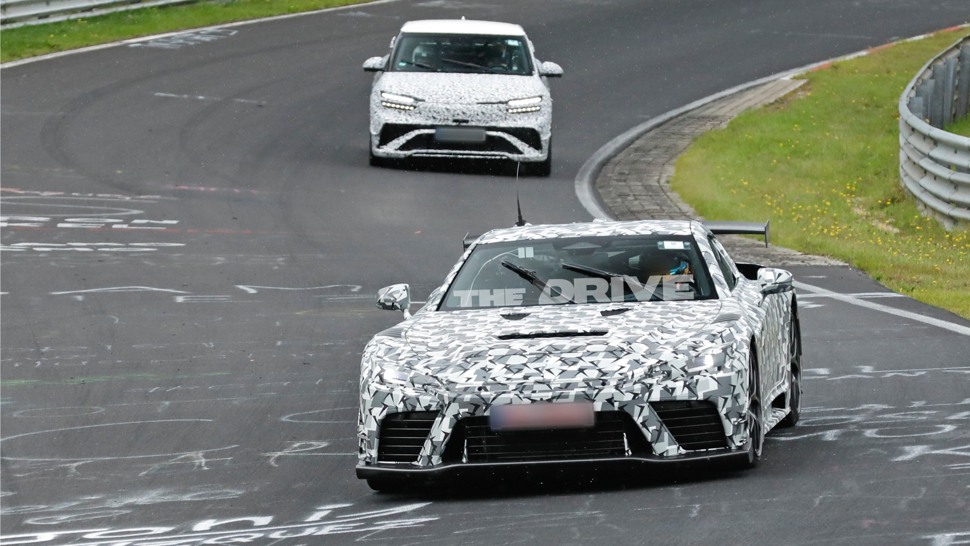 And man, just look at this thing. It’s wide, it’s low and it’s rocking some serious aero. Lexus was testing it against both a Mercedes-AMG GT R and a GT Black Series—some serious bogeys when it comes to keeping pace at the Nürburgring. Now that we’ve seen the Sport Concept, Lexus has less to hide, but the camo on these prototypes remains fairly comprehensive. One component of that disguise gave Lexus some grief, and helped me solve my lingering puzzle.
