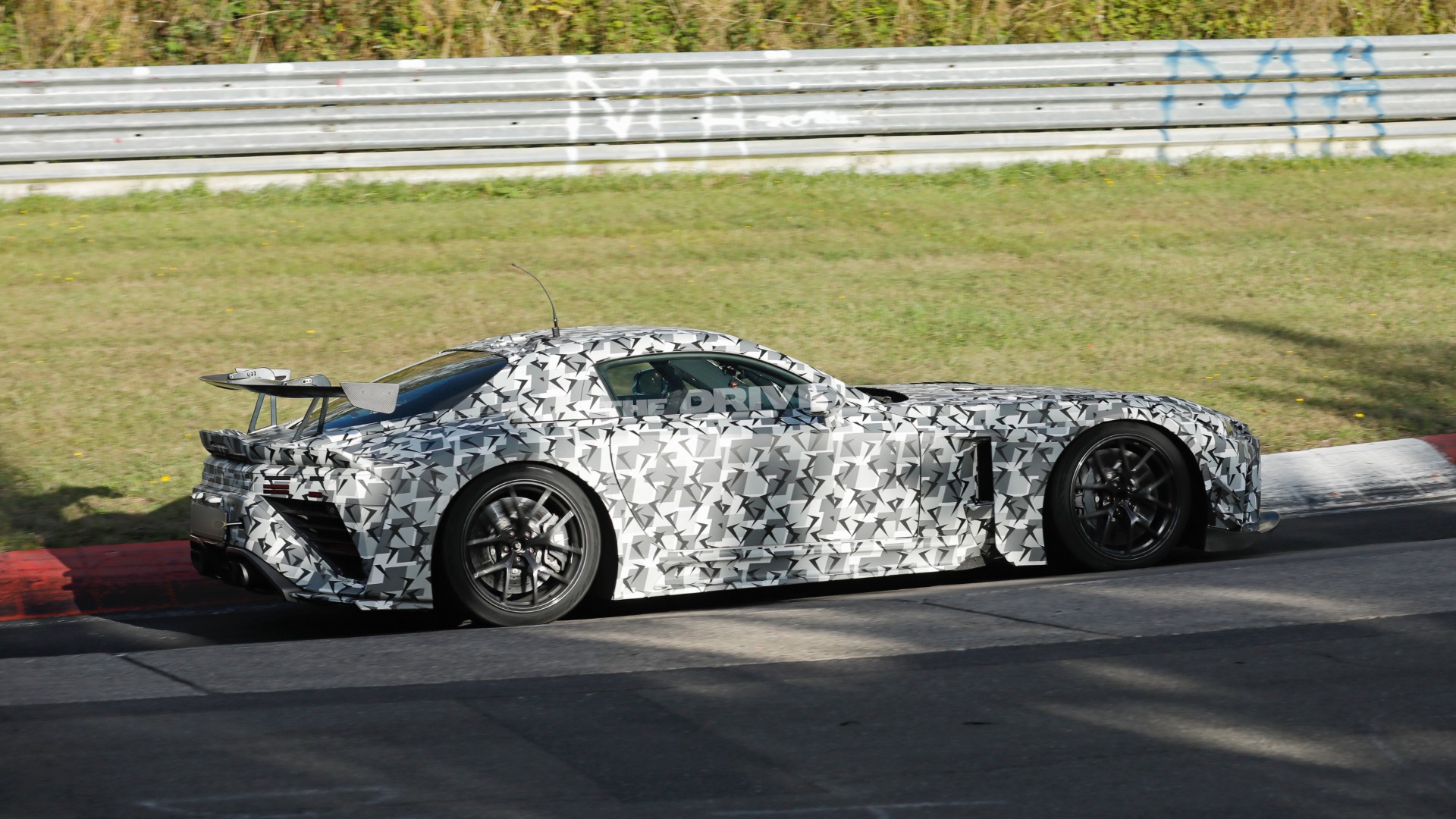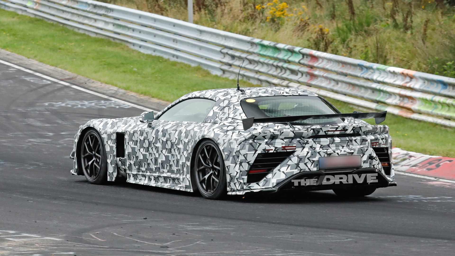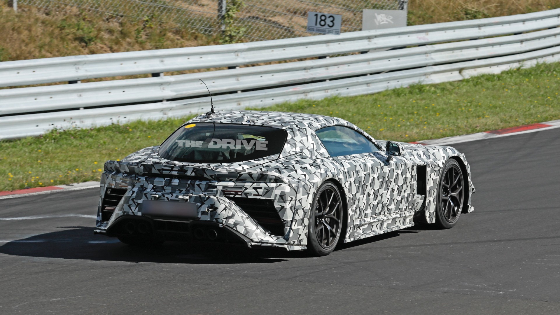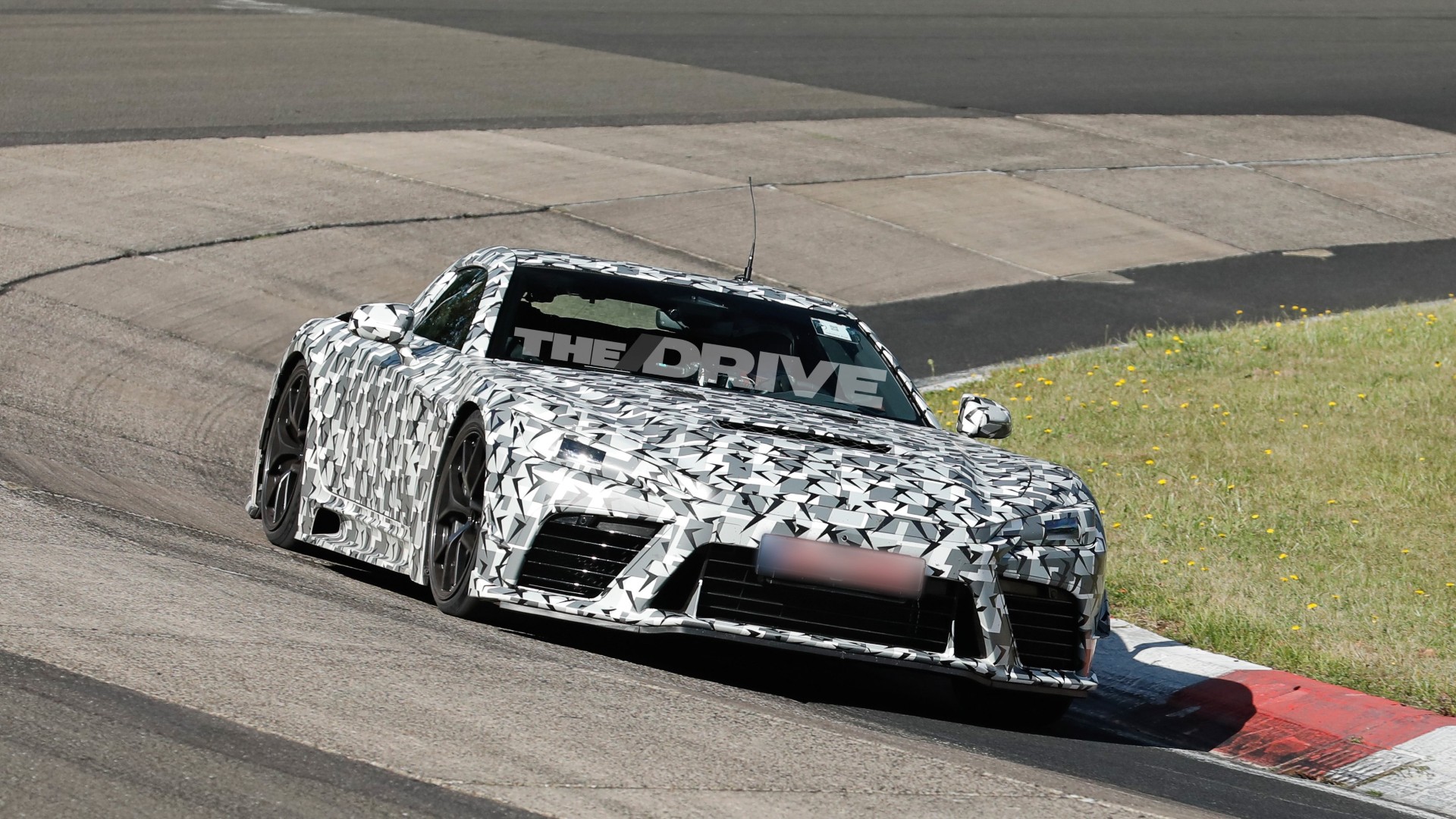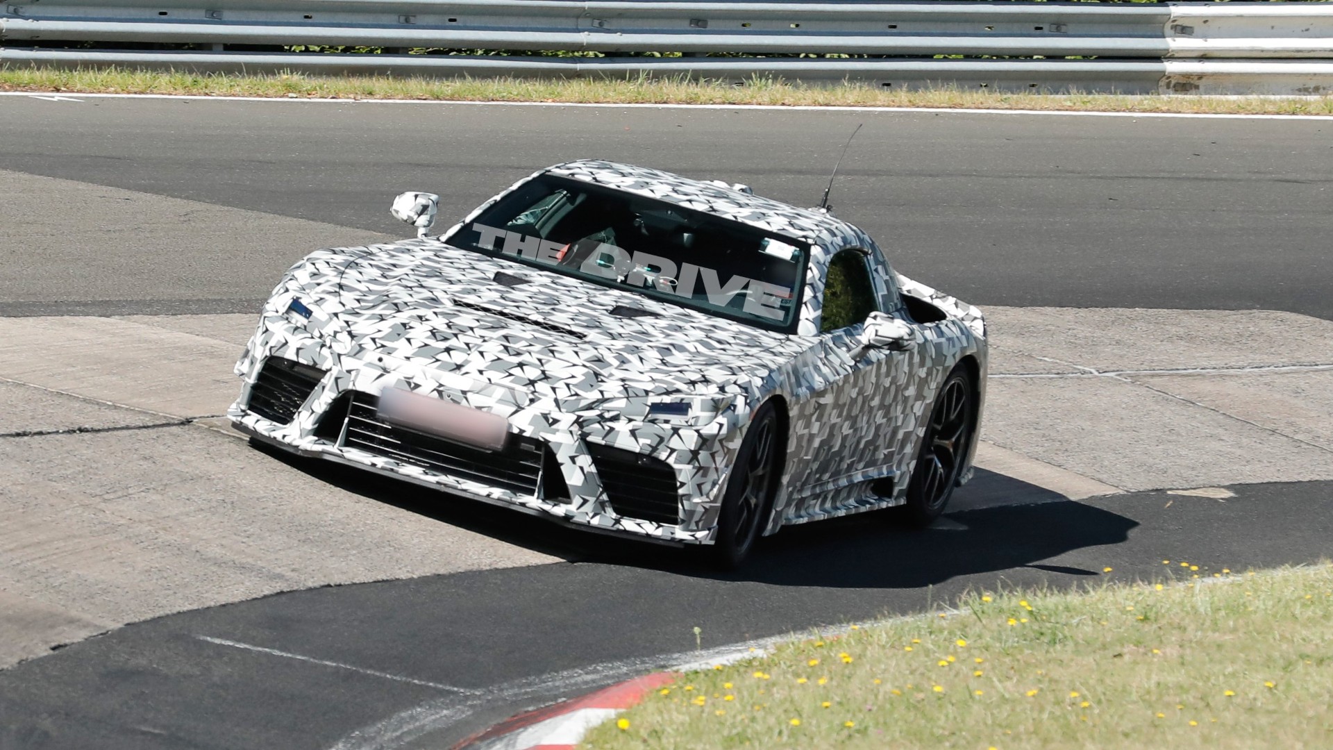 And man, just look at this thing. It’s wide, it’s low and it’s rocking some serious aero. Lexus was testing it against both a Mercedes-AMG GT R and a GT Black Series—some serious bogeys when it comes to keeping pace at the Nürburgring. Now that we’ve seen the Sport Concept, Lexus has less to hide, but the camo on these prototypes remains fairly comprehensive. One component of that disguise gave Lexus some grief, and helped me solve my lingering puzzle.