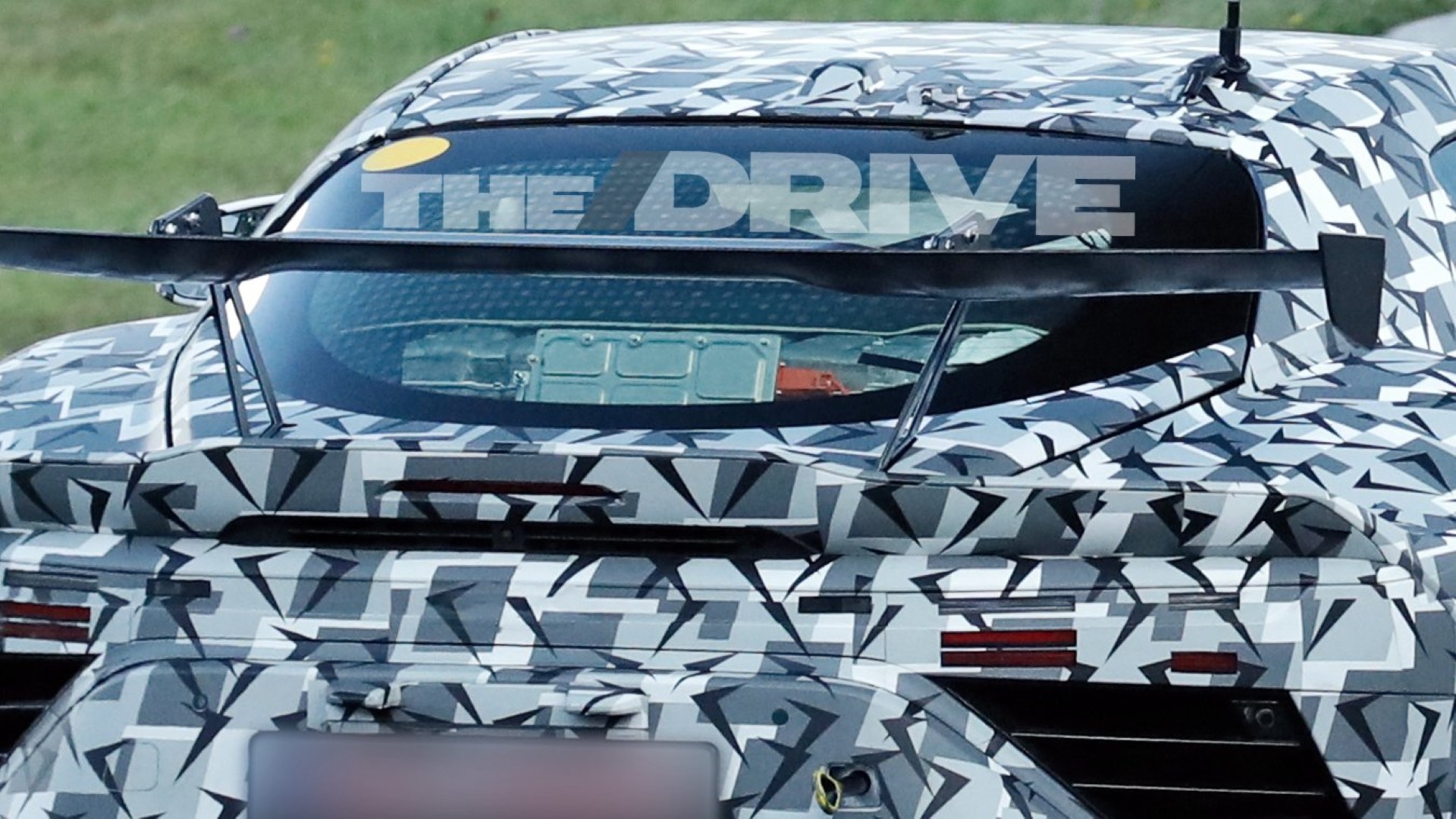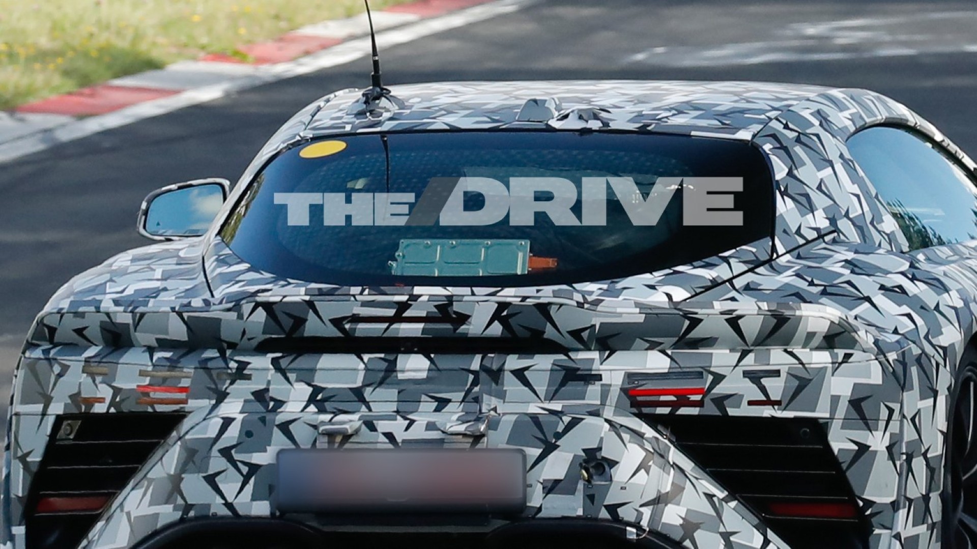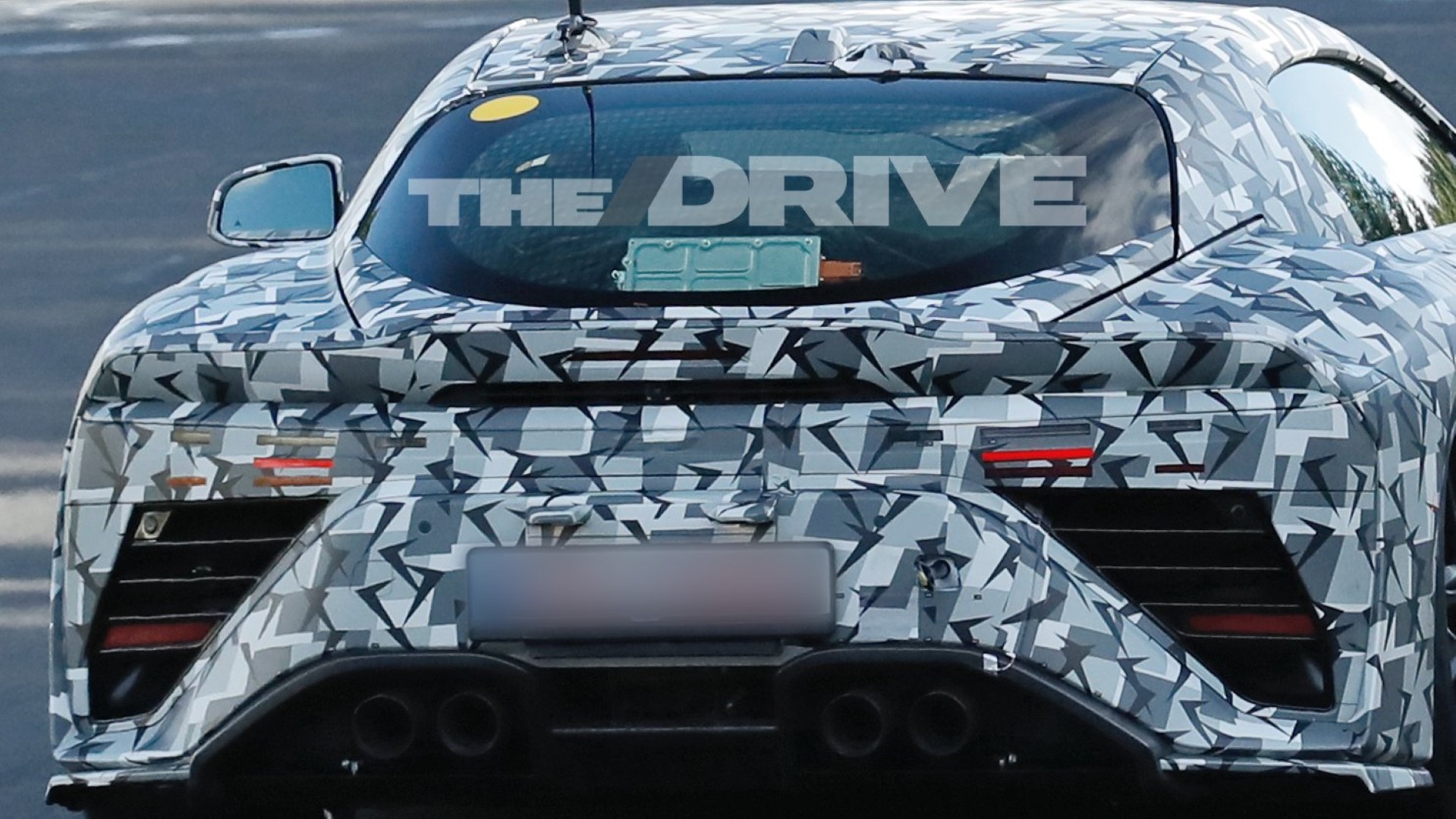 Yep, that appears to be a component of the LFR’s hybrid system. So while there may not be an internal-combustion engine under that cover, there may well be an electric motor or two straddling the LFR’s rear axle.