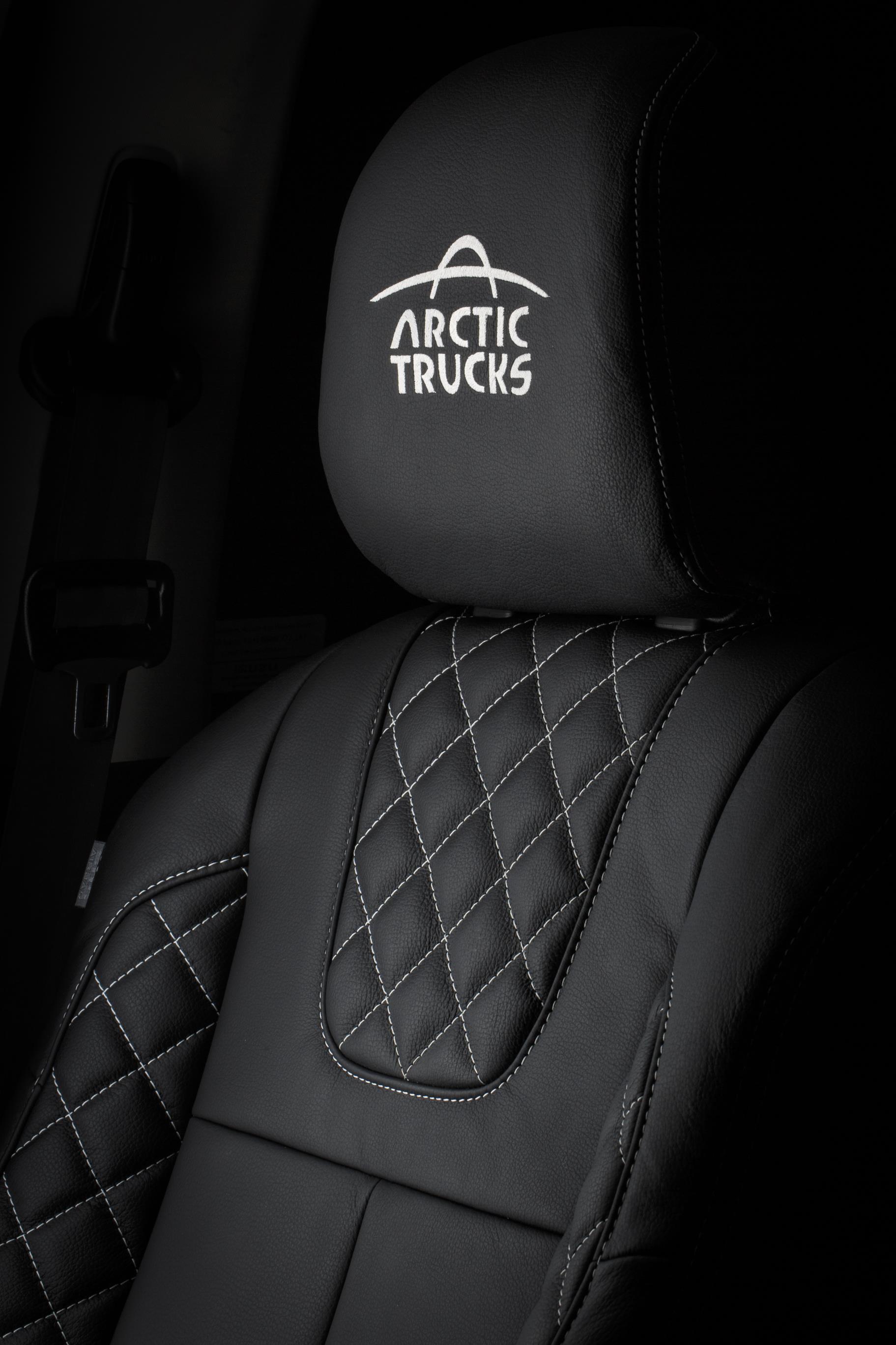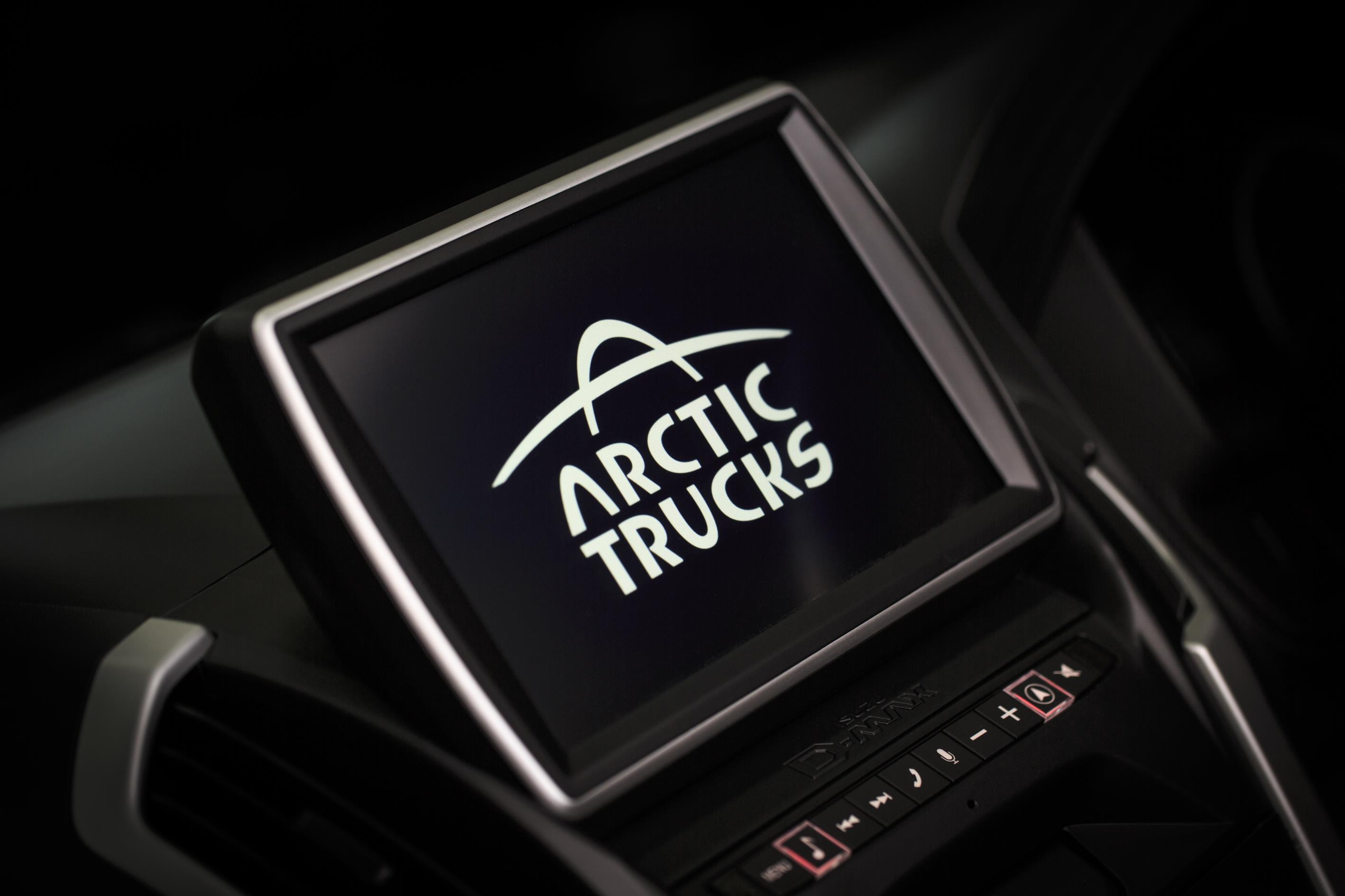 As for the cabin, upgrades include seats that are upholstered in a bespoke quilted leather with contrast stitching, a new nine-inch multi-function color touchscreen (with Arctic Trucks graphics), and a nine-speaker sound system including subwoofer and an HDMI port.