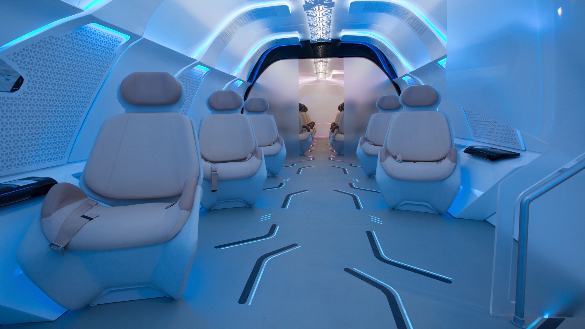Floor lighting helps to brighten up the cabin, and designers incorporated references to traditional Arabic patterns. The seatbelts look remarkably basic for a vehicle that will supposedly reach speeds of over 600 mph, likely with hard acceleration and deceleration on either side.