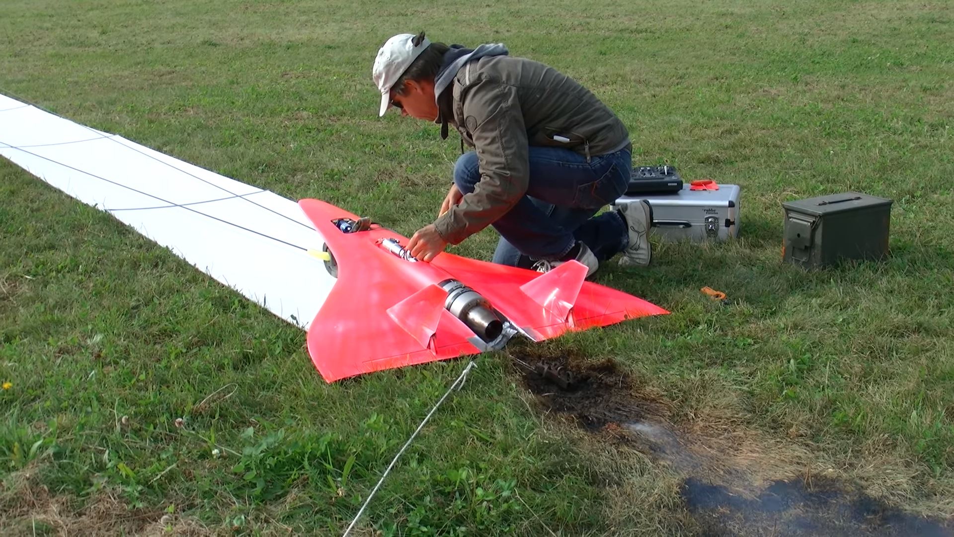 Once the turbine is started, the grass behind the craft is toasted just before the craft is let loose. Once airborne, the Inferno terrorizes the skies in a series of loops and flybys with all the intimidating noises of an F-16 Fighting Falcon. The jet finally cuts off and the Inferno gracefully makes its way back down to earth.