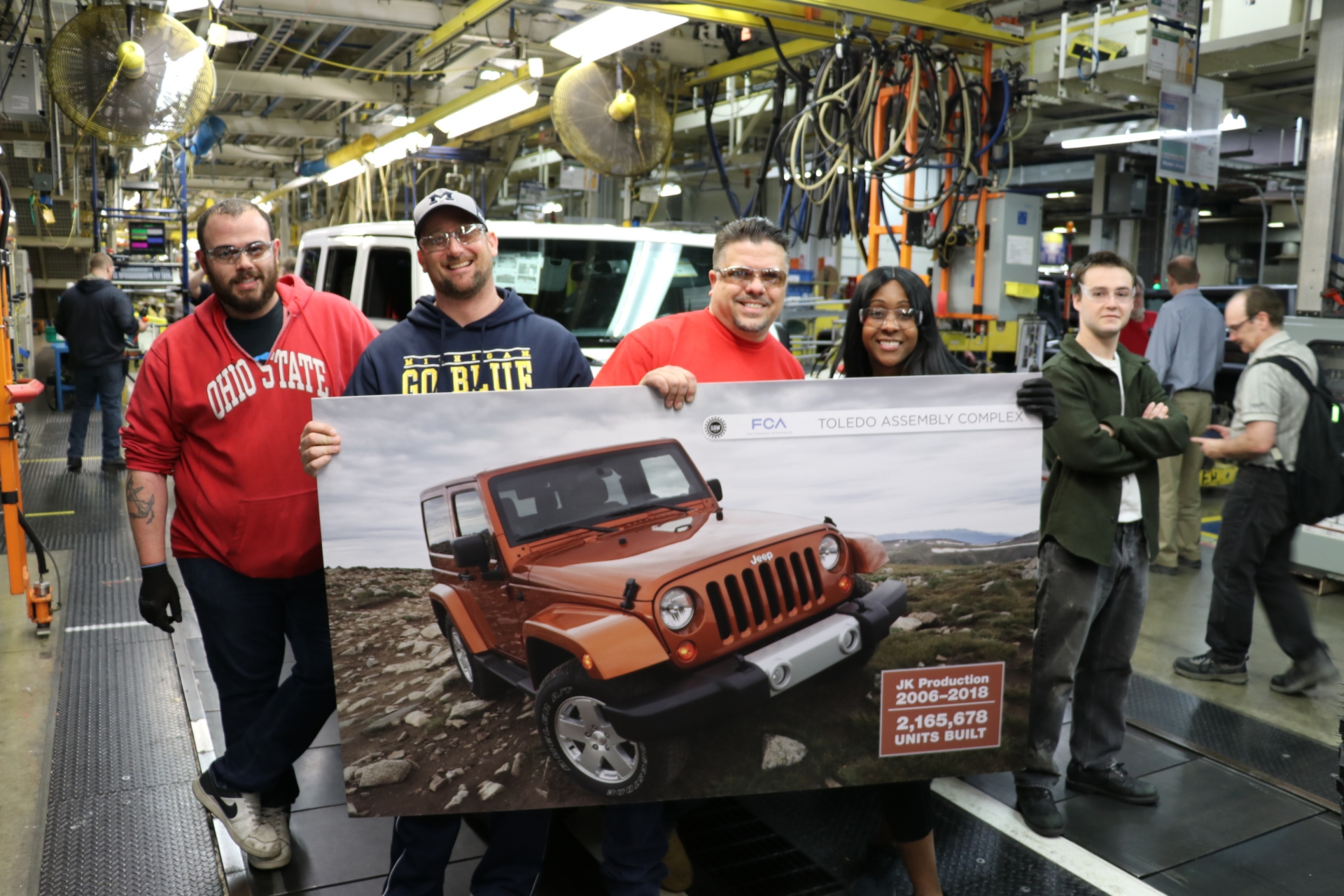 According to a press release from FCA North America, the last of the Jeep Wrangler JK vehicles have rolled off the production line at the FCA U.S. Toledo Supplier Park after a 12-year production run, during which more than 2.1 million vehicles were built. The Toledo Assembly Complex will be reorganized to accommodate the production of the all-new Jeep Truck, which will be launched in the first half of 2019.