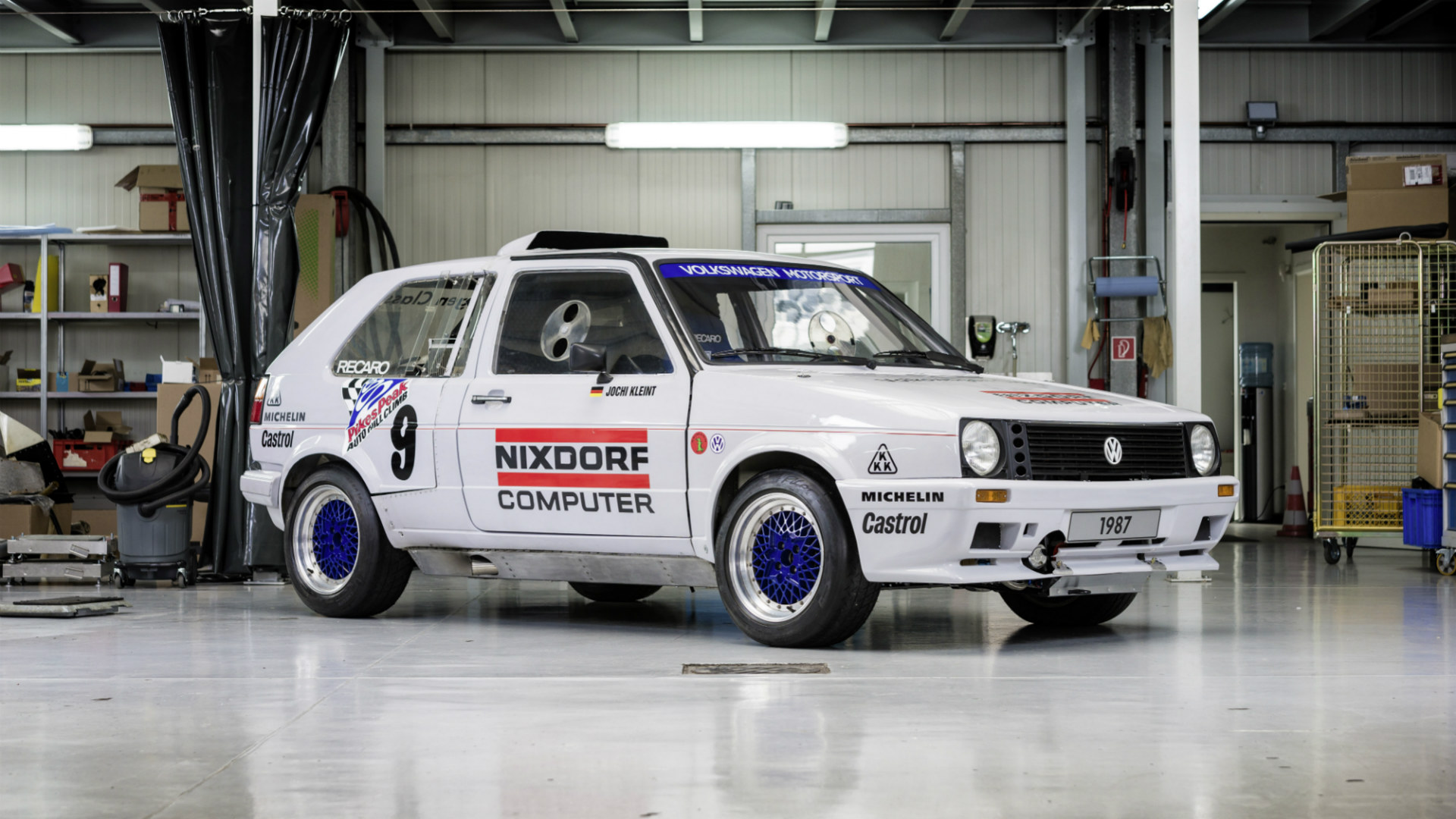 The result was a 643-horsepower Golf with a 3.4-sec zero to 60 mph time and the ability to switch between front, rear, and four-wheel drive. Renowned rally driver Klaus-Jochem “Jochi” Kleint drove this beast at the 1987 Pikes Peak event, and halfway up the hill climb he was predicted to have the fastest time. Sadly, a suspension ball joint broke just a quarter-mile from the top, and the Golf never made it to the finish line. VW retired the dual-engined Golf, and it sat neglected for three decades.