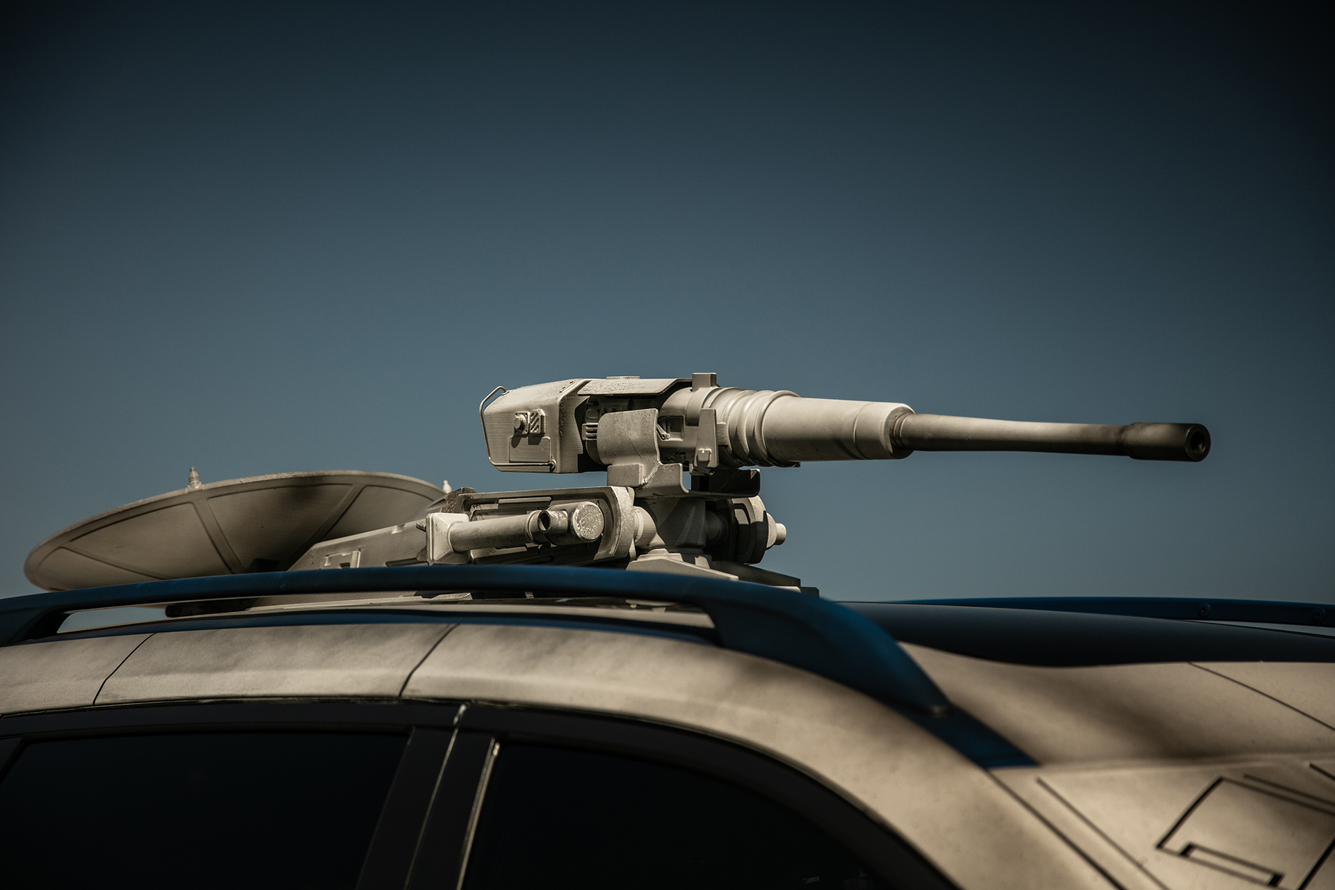 The exterior is where much of the workmanship shines. Custom handcrafted aluminum body panels feature details mimicking the Millennium Falcon, while 3-D-printed inserts bring another level of immersive depth to the vehicle. A roof-mounted radar dish and laser cannon appear as though they could have been lifted right from the movie set. Up front, the multi-pane windshield clearly resembles the cockpit of the Falcon.