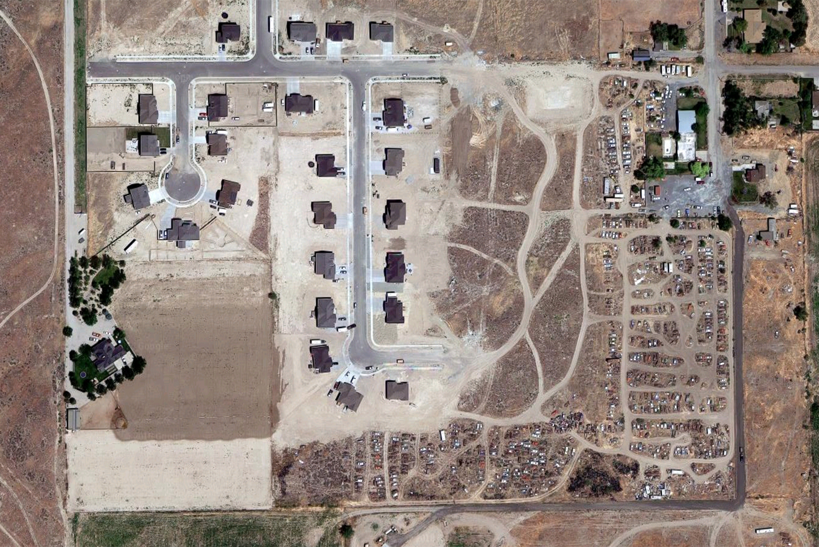 The plight of Dennis McBride’s parts yard was first highlighted by local news station KSL-TV, who followed the 73-year-old around McBride’s Auto Wrecking in the town of Grantsville as he explained why the expansive property was doomed. Of course, no words are needed; you can see identical McMansion-looking homes sprouting up above the acres of rusty metal in nearly every shot.