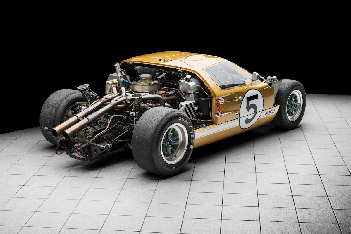 Ford’s victory at Le Mans was owed in part to the fact that the company followed the American “bigger is better” attitude. P/1016 and its fellow GT40s used a massive 7.0-liter V8 powerplant, putting the measly 3.3-liter V12-equipped Ferraris and 1.9-liter flat-six-equipped Porsches in their place. RM Sotheby’s also notes that P/1016 was the only competing GT40 to use an automatic transmission.
