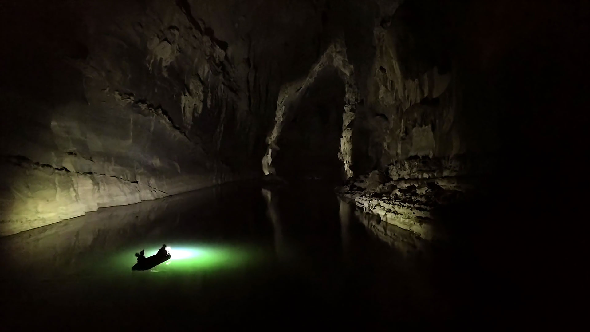 Tucked away in Southeast Asia, within the verdant wonderland known as the Hin Nam No National Protected Area, there is a cave called Tham Khoun Xe. Carved out of the rock by the power of the Xe Bang Fai River, it stretches more than four miles end-to-end; averaging 250 feet wide and 185 feet high, it’s one of the largest caves still in the midst of formation. It’s a glorious, beautiful thing. Also, damn near inaccessible to us stateside would-be explorers, because Tham Khoun Xe is located in central Laos.