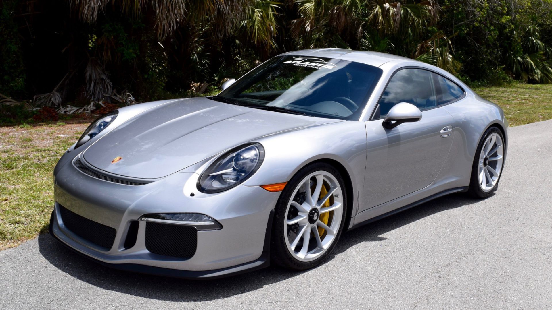 This GT Silver Metallic, stripeless example has a clean Florida title and is apparently equipped with air conditioning, heated 18-way adjustable sport seats, and navigation. So much for the “purist’s Porsche.”