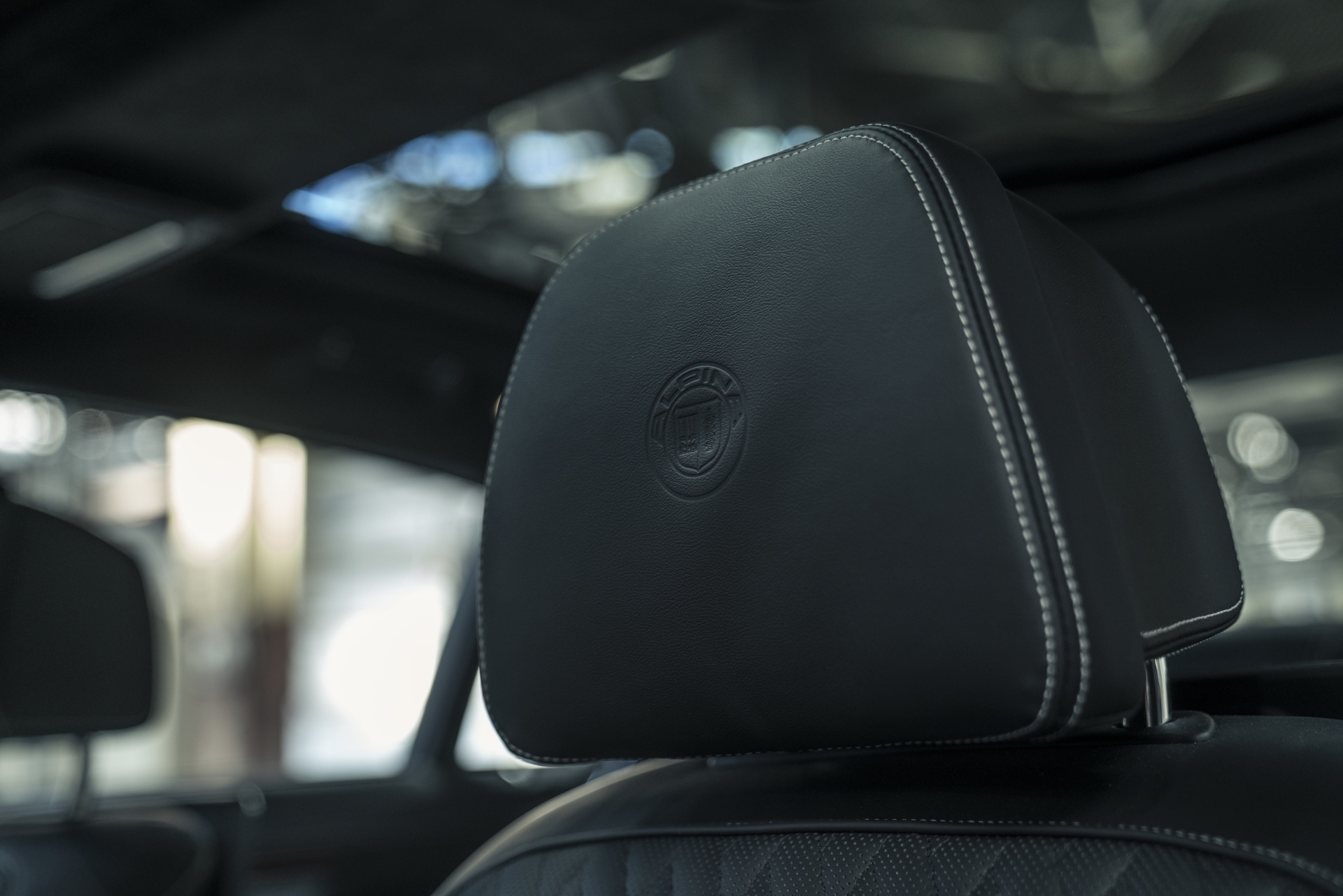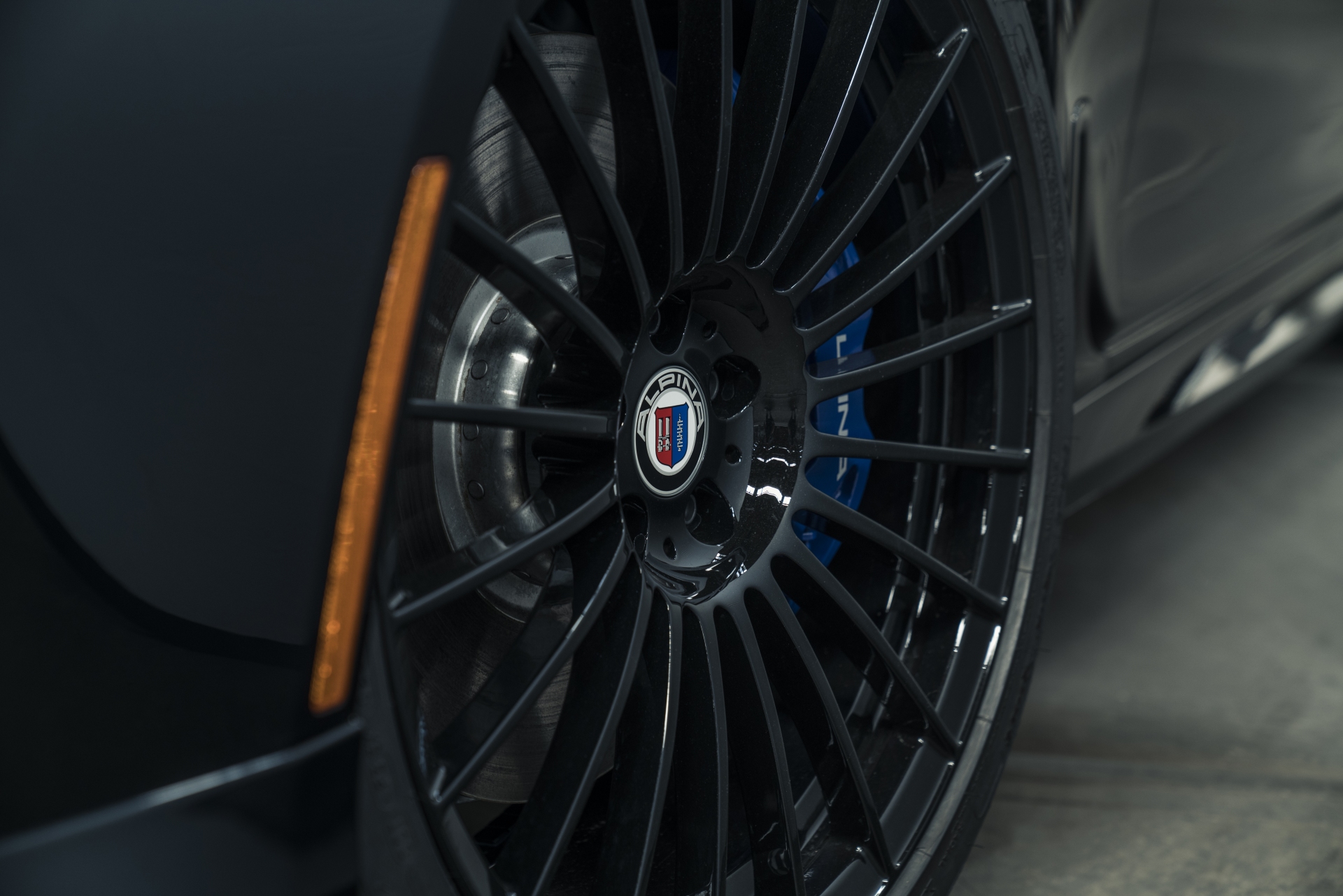 In the cabin, an Alpina production plaque fixed to the center console gives the manufacturer I.D. The vehicle’s paintwork is stamped underneath the “Alpina Exclusive” designation, with the numbering “1 of 7” proposing the vehicle’s exclusivity. Other distinguishing features include logo-embossed headrests and black BMW Individual Full Merino Leather with contrast stitching that goes on the seats, door panels, and dash. Additionally, a Piano Black wood has been specified for cabin trims while the hand-finished steering wheel features dark grey stitching.