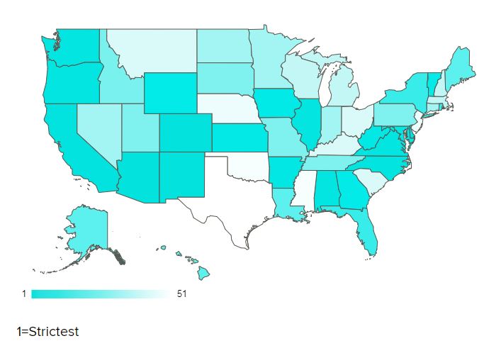 Taking a gander at the heat map WalletHub also put together, we can see that states residing in the country’s geographic spine have a tendency towards leniency with Texas, Mississippi, Oklahoma, and Nebraska occupying four out of the bottom five spots. Not too surprising given the region’s sparse population density and long, uninterrupted stretches of road.