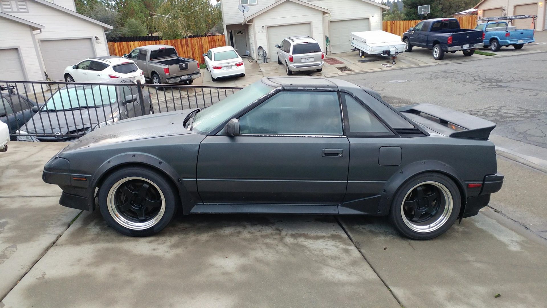 Looking at his MR2’s exterior, you would never guess you gaze at a car that gulps boost like an anaconda swallowing a mule. The car’s rear bumper comes from what he suspects to be a junkyard Honda Accord (it’s meant to hide the second turbo) and its headlight housings are homebuilt, holding HIDs. Only the fender flares were in any sense meant to fit the car, and even they required the factory body be chopped up to fit.
