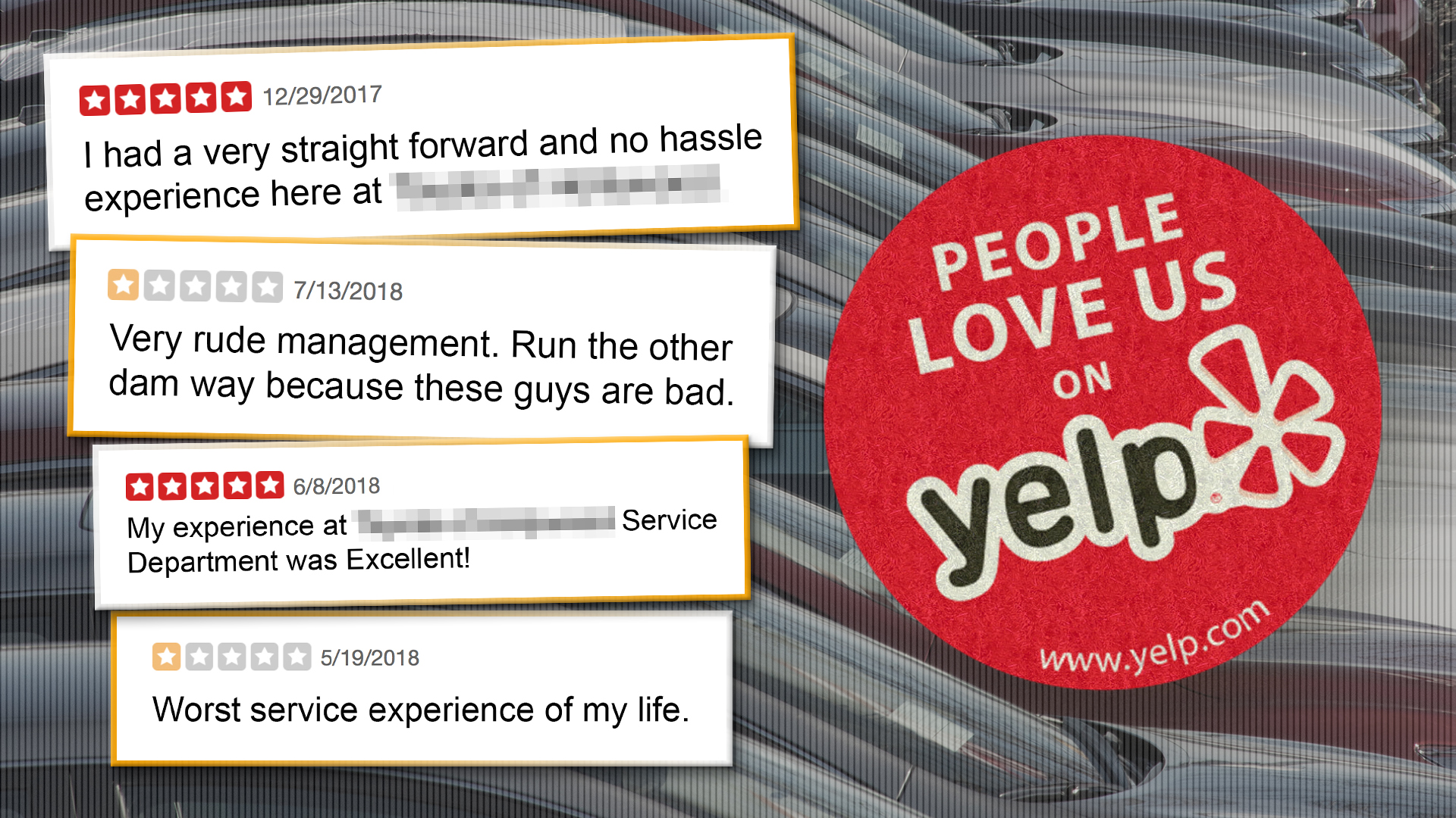 But NADA directed me to Digital Air Strike, an online advertising and reputation management firm that works with Cars.com and many other dealer groups. It’s co-founder and CEO Alexi Venneri believes that regardless of the validity of a one-star rating, dealers are best served by reaching out to the complainers to publicly demonstrate their responsiveness, rather than worrying about a representative sampling of reviews. And at the end of the day, Yelp is an independent, elective review site that presents a more black-and-white vision of the world. It doesn’t help that buying a car is a pricey, complex, slightly scary transaction for most buyers.