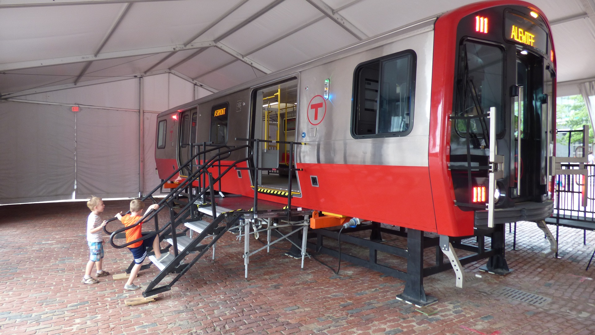 Under a tent within sight of the Government Center station sits a mock-up of the new subway cars for the Massachusetts Bay Transit Authority’s Red Line. By 2022, 252 of these will be in service under the streets of Boston and its suburbs, a 15 percent increase over the current fleet’s numbers. Additionally, 152 nearly identical cars will be in service on the Orange line, a 28 percent increase. Having commuted on the Red Line myself for a number of years, I am intimately familiar with the current service and its limitations, so I took the opportunity to see what lies ahead for the future.