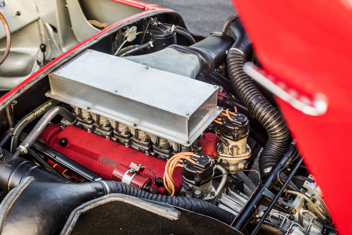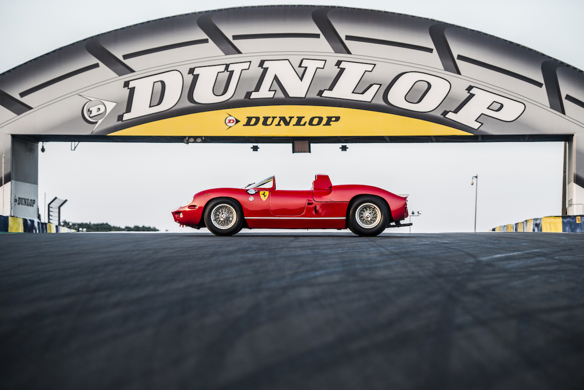 The prototype continued racing in other events after its back-to-back wins at Le Mans with legendary Ferrari drivers like John Surtees and Luigi Chinetti at the wheel. Famed Ferrari enthusiast Pierre Bardinon bought the car in 1970, and it remained in his collection for 48 years, having never been restored or modified. Thus its original body, 3.3-liter V12 engine, and five-speed manual transmission are still intact.