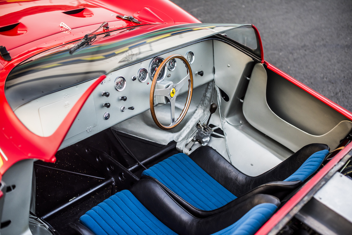 When this 1963 example was first dropped in RM Sotheby’s lap, the auction site did some digging with help from Ferrari Classiche and found that this car, chassis 0816, took the overall victory at the 24 Hours of Le Mans in both 1963 and 1964, as well as at the 1964 12 Hours of Sebring. In fact, 0816 wasn’t even intended to participate at Le Mans in ’64, but stepped in when the car scheduled to race crashed in practice. After that win, Scuderia Ferrari (Ferrari’s factory racing division) never scored another overall victory at Le Mans.