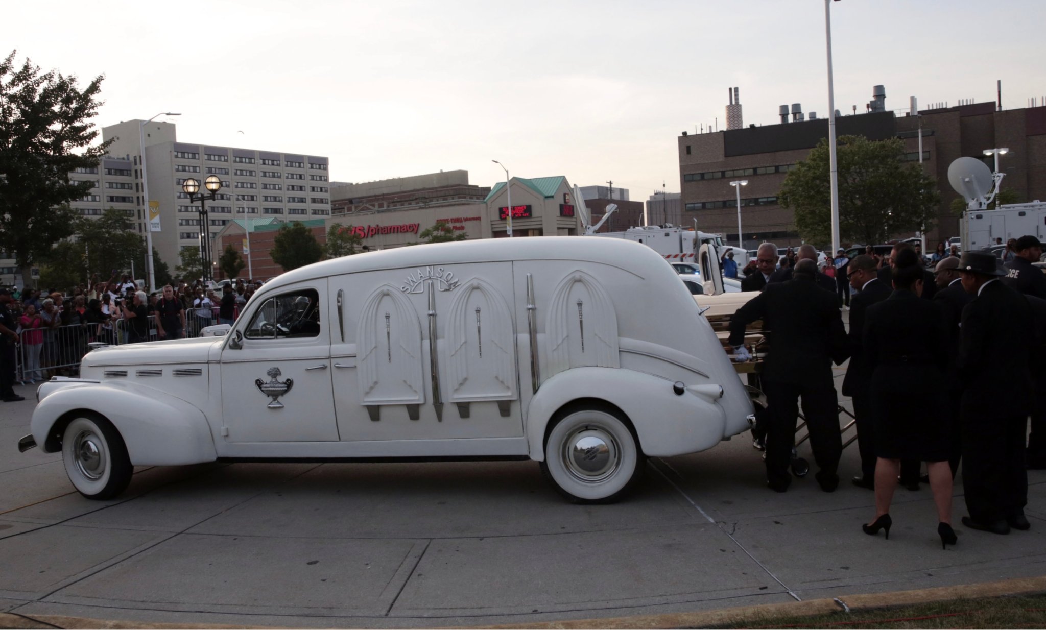 This particular LaSalle hearse has been synonymous with the Swanson Funeral Home in Detroit since it opened 60 years ago. It’s luxurious aesthetic has served many high-profile funerals such as civil rights icon Rosa Parks, David Ruffin of the Motown group The Temptations, and Franklin’s father the Rev. C.L. Franklin.