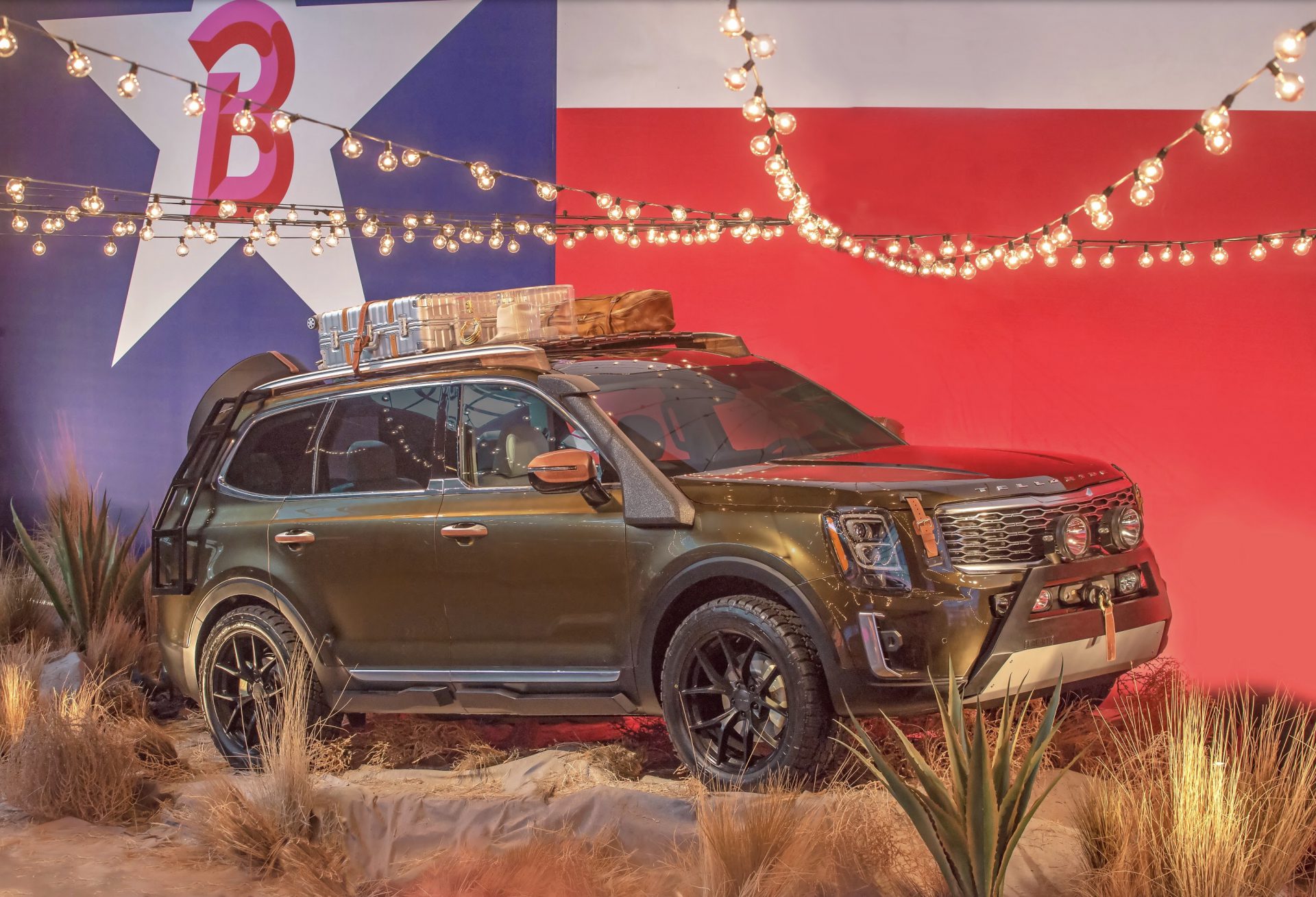 A customized version of the 2020 Kia Telluride SUV made its first public appearance today at New York Fashion Week. Two years after the full-size SUV was unveiled at the 2016 North American International Auto Show in Detroit, it made quite a statement on the fashion runway in the Big Apple. The bespoke SUV was influenced by fashion designer Brandon Maxwell’s 2019 Spring-Summer apparel collection—and his Texas roots.