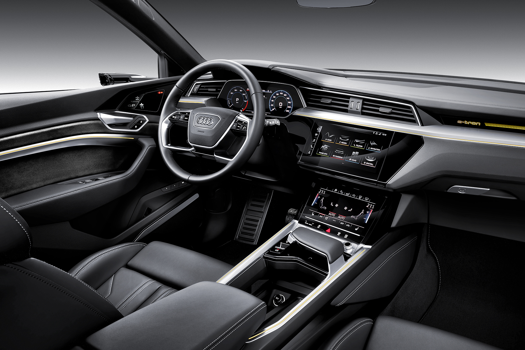 The battery/motor combo is said to be good for 265 kW (around 300 horsepower) and 414 pound-feet of torque in normal driving, while a driver-activated “boost mode” bumps those numbers up to the equivalent of 402 hp and 490 torques for eight seconds on demand. Like with most EVs, the decision to spread out the 1,500-pound battery under the cabin floor should give it a low center of gravity and boost handling. The E-tron will scoot from 0 to 60 mph in 5.5 seconds, and while that’s certainly a good deal slower than a Tesla operating in Ludicrous mode, it’s more than enough for any legal commute.