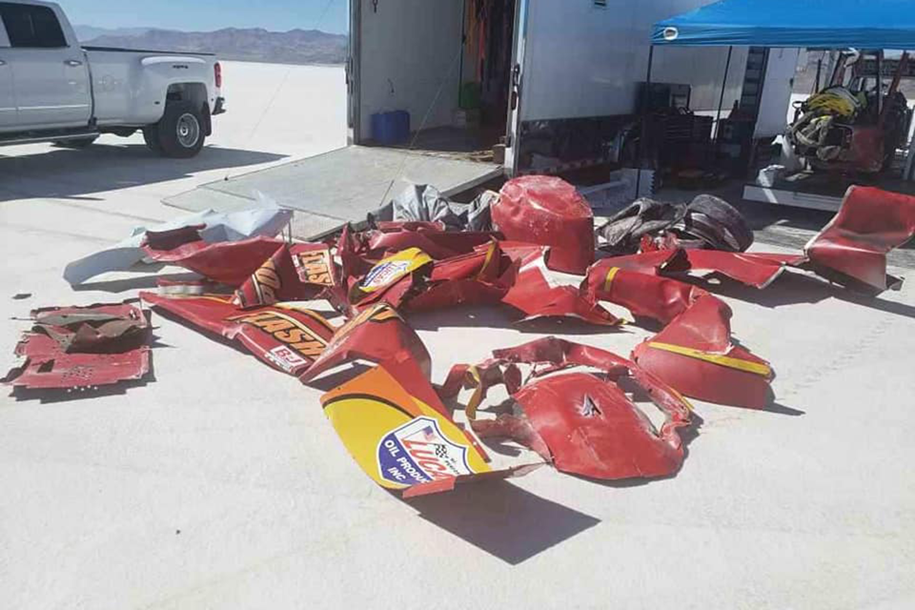 It’s almost impossible to imagine the feeling of losing control in that moment. The race team shared eyewitness video of the crash on its Facebook page; at 2:05, the visible blowout sends the vehicle spinning then rolling as it skips across the salt like a stone on a flat lake.